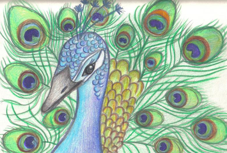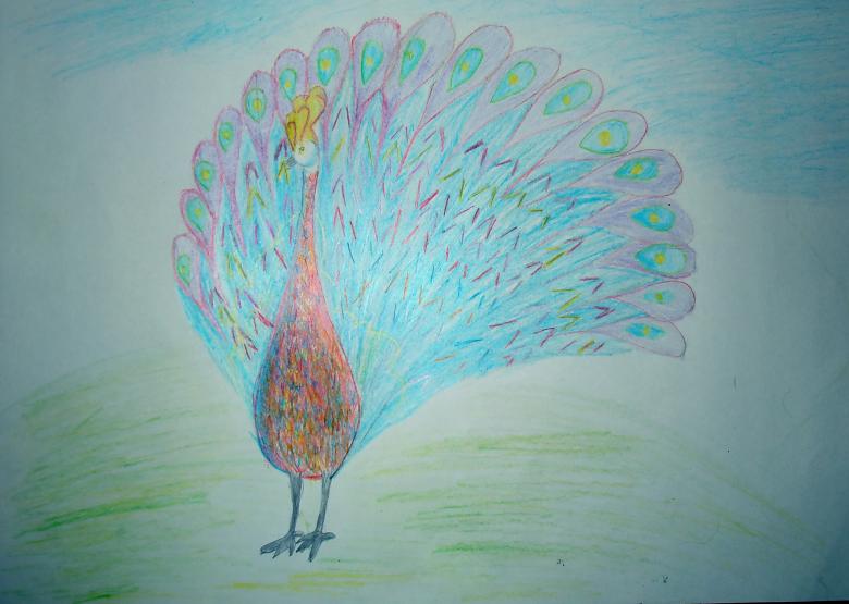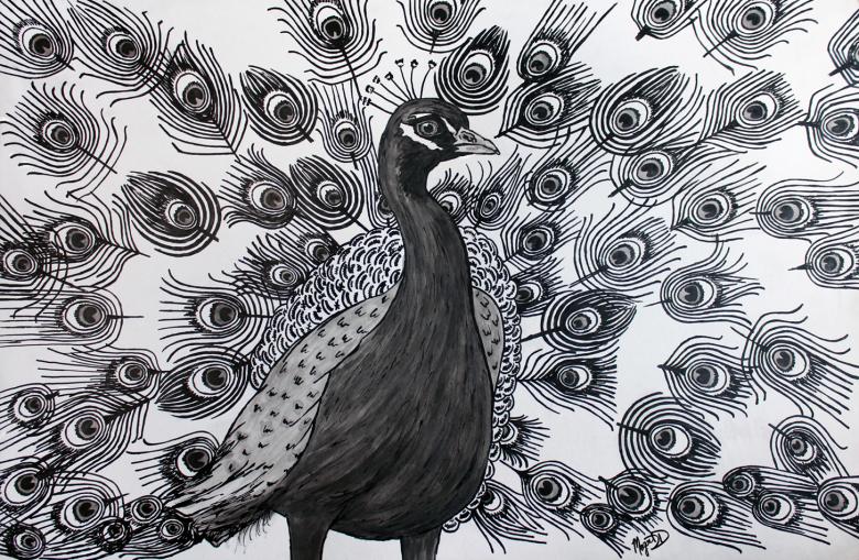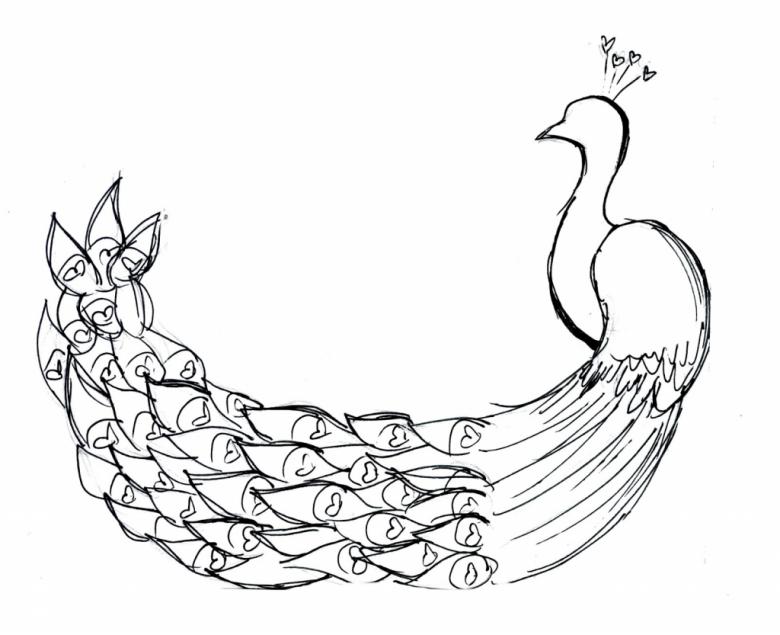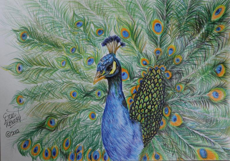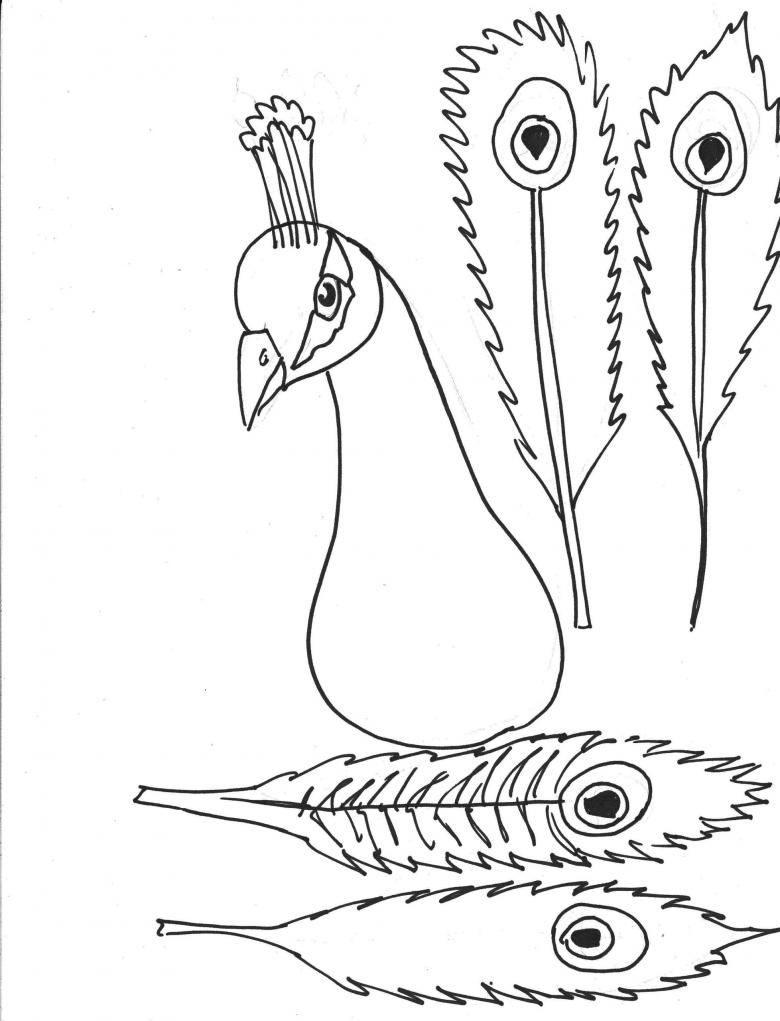 - La deuxième partie doit montrer le paon de profil.