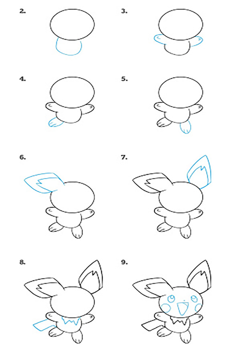 Avec un peu de pratique, vous savez par cœur comment dessiner un joli Pikachu. Vous pouvez modifier progressivement le dessin en ajoutant vos propres petits ajustements : vous pouvez changer le sourire de Pikachu, ajouter des franges, dessiner un motif sur sa poitrine et modifier la position de ses pattes ou de ses oreilles.