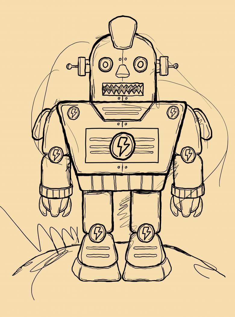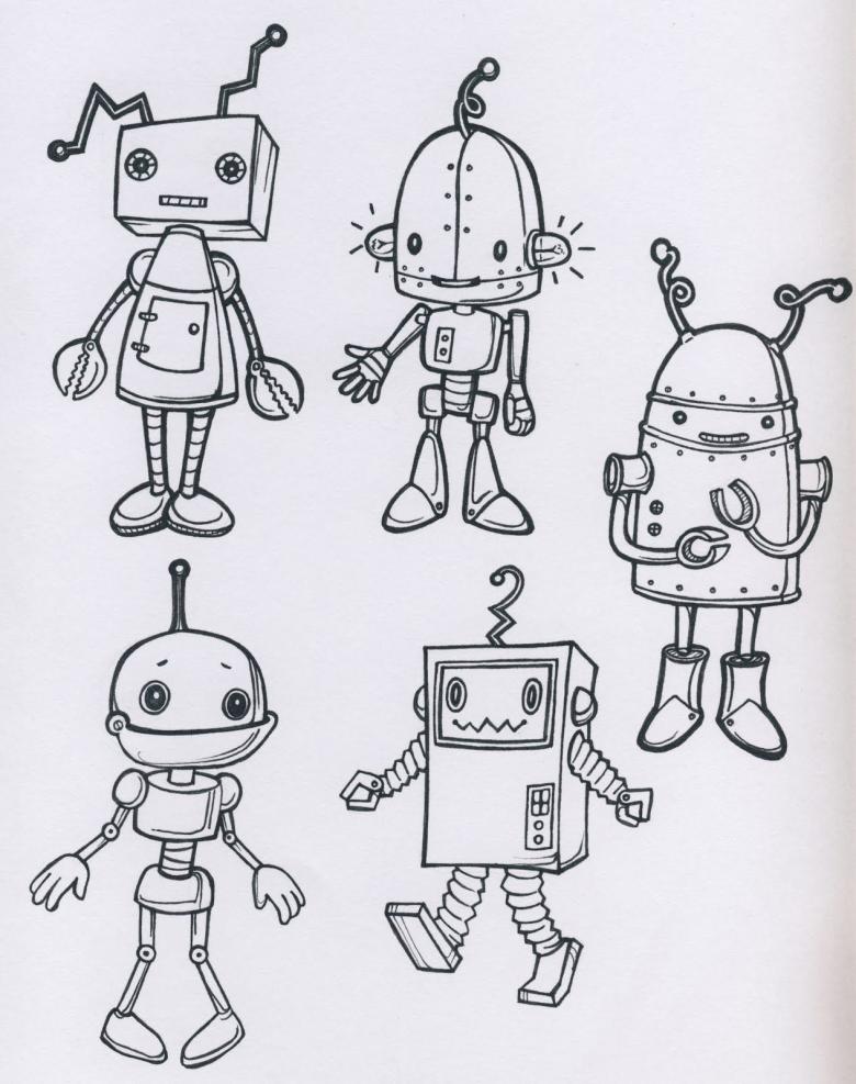 Un illustrateur enfant ou adulte choisit le thème du futur dessin. Le robot peut être gentil et joyeux, ou bien être un méchant alien venu d'une autre planète. En outre, la configuration du futur personnage peut varier de façon spectaculaire. Pour obtenir l'effet désiré, il est préférable de se familiariser à l'avance avec les robots, les personnages de dessins animés ou de livres les plus célèbres.