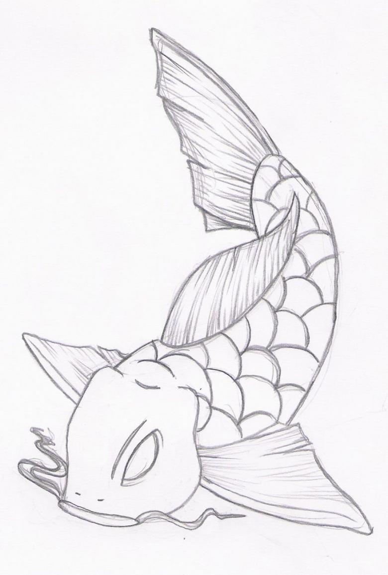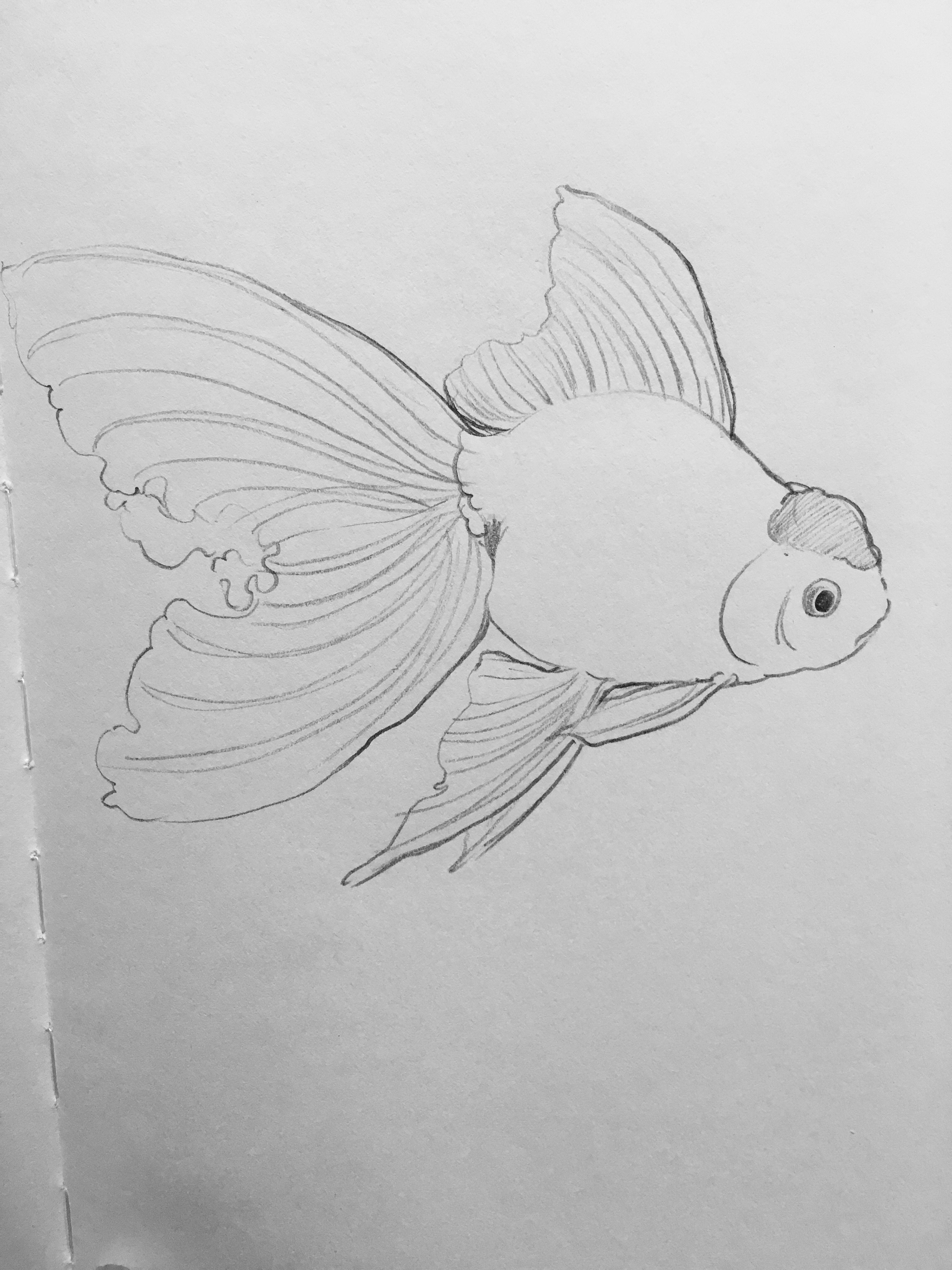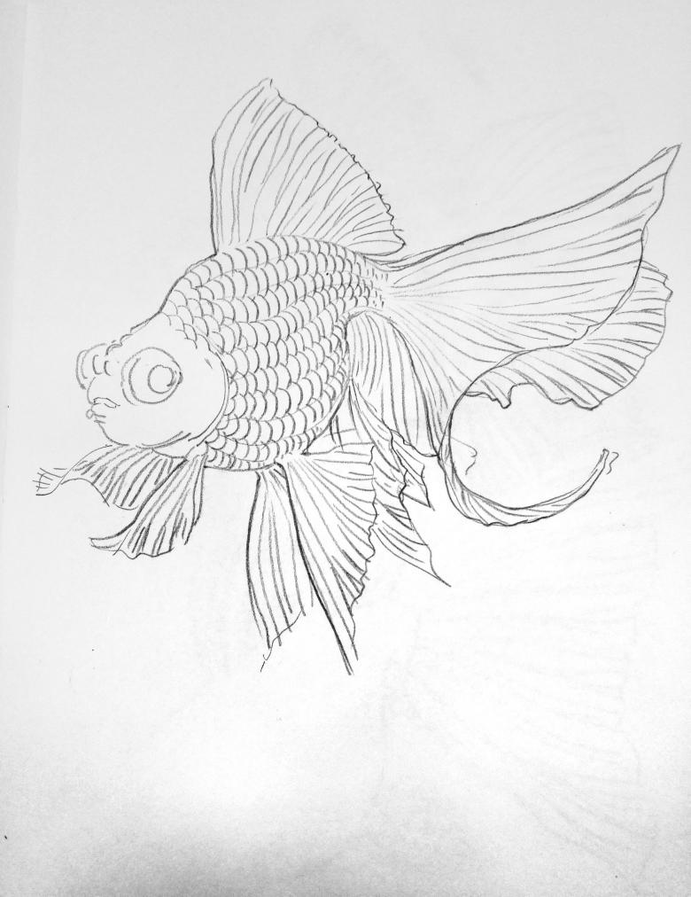- Un simple dessin au crayon est prêt après la peinture des nageoires et de la queue.