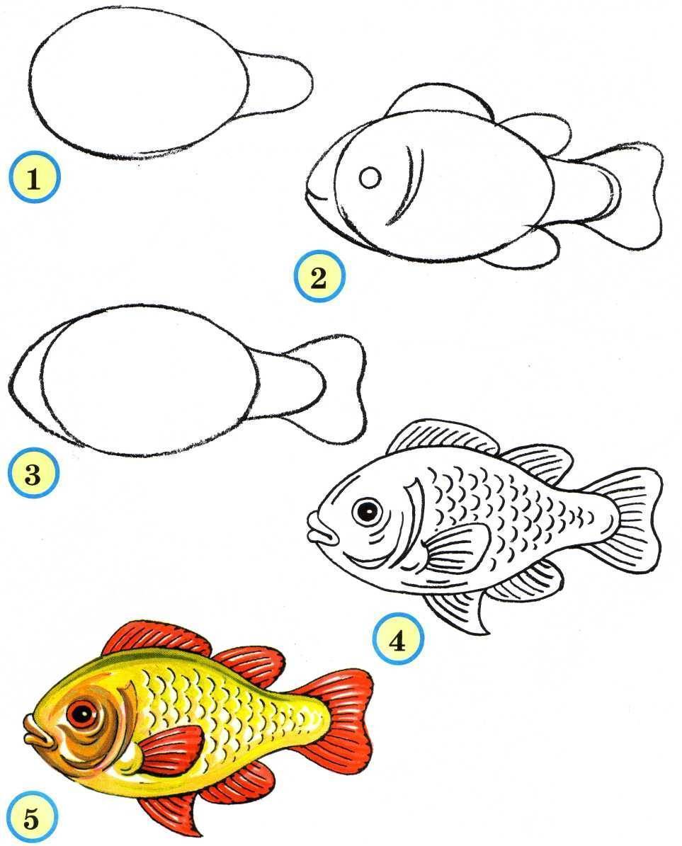 Dans la nature, il y a des poissons de toutes les tailles et de toutes les couleurs. Comment dessiner pas à pas un poisson brillant en essayant d'apprendre aux enfants dès leur plus jeune âge. Il existe de nombreux schémas : du simple classique pour enfants à l'image d'une héroïne de conte de fées qui exauce tous les vœux, en passant par le célèbre personnage du poisson Nemo du dessin animé de Disney.
