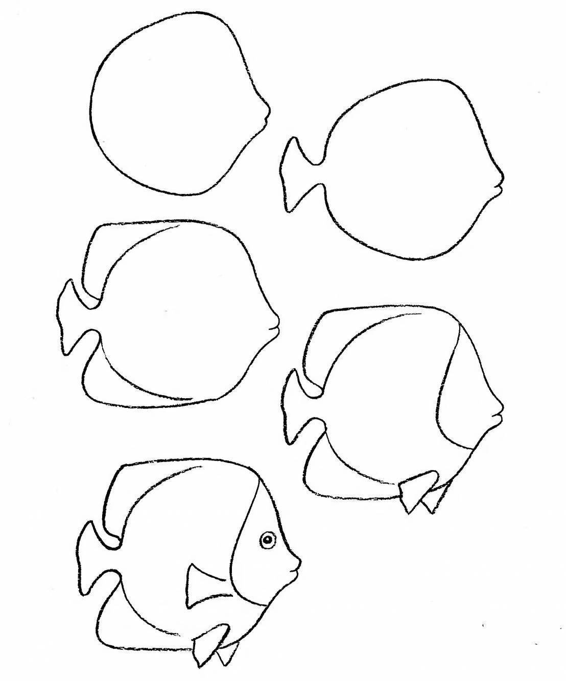 Pour les enfants plus âgés, il n'est plus intéressant de dessiner une version trop simple du poisson, lorsqu'il se compose d'un corps ovale et d'une queue triangulaire.