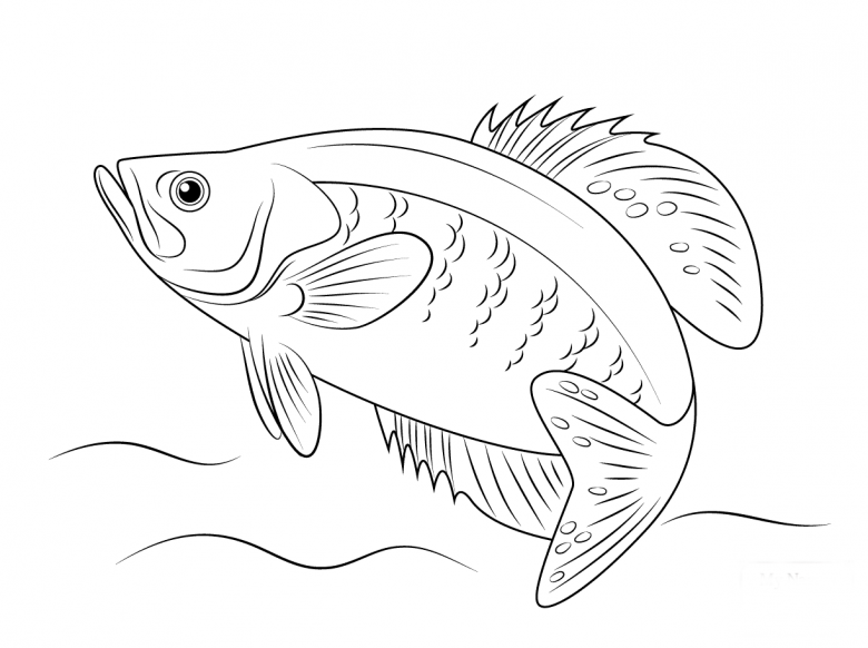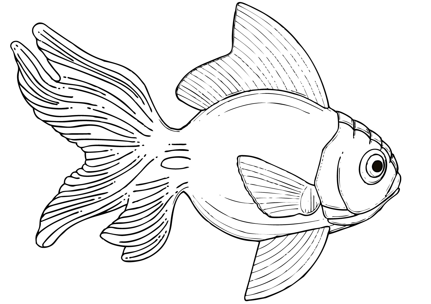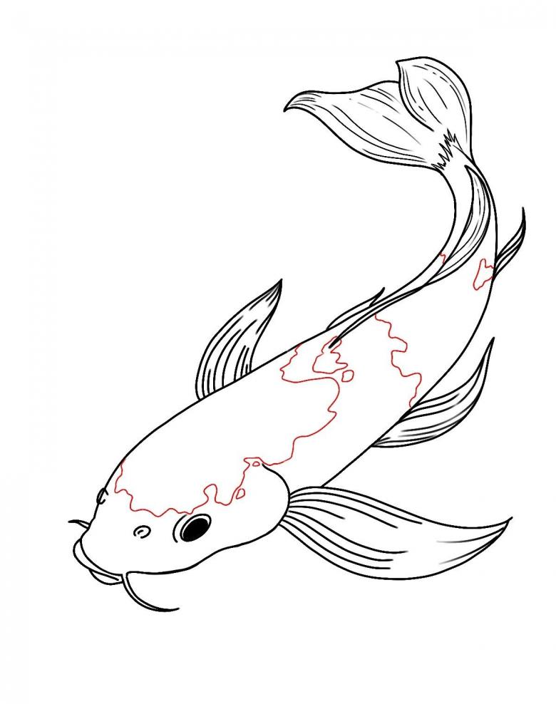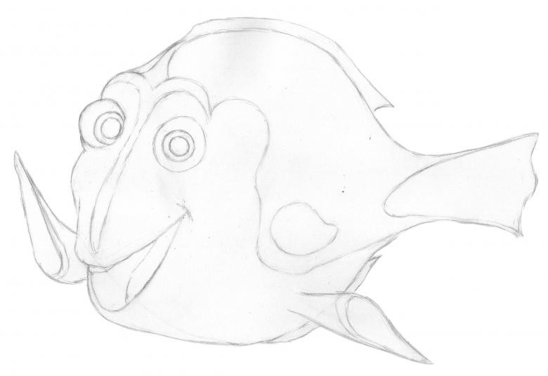 - Le contour du corps et de la queue du poisson est dessiné.
