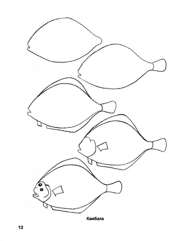 - Les poissons à nageoires sont dessinés sur le dessus du corps, le côté et le dessous.