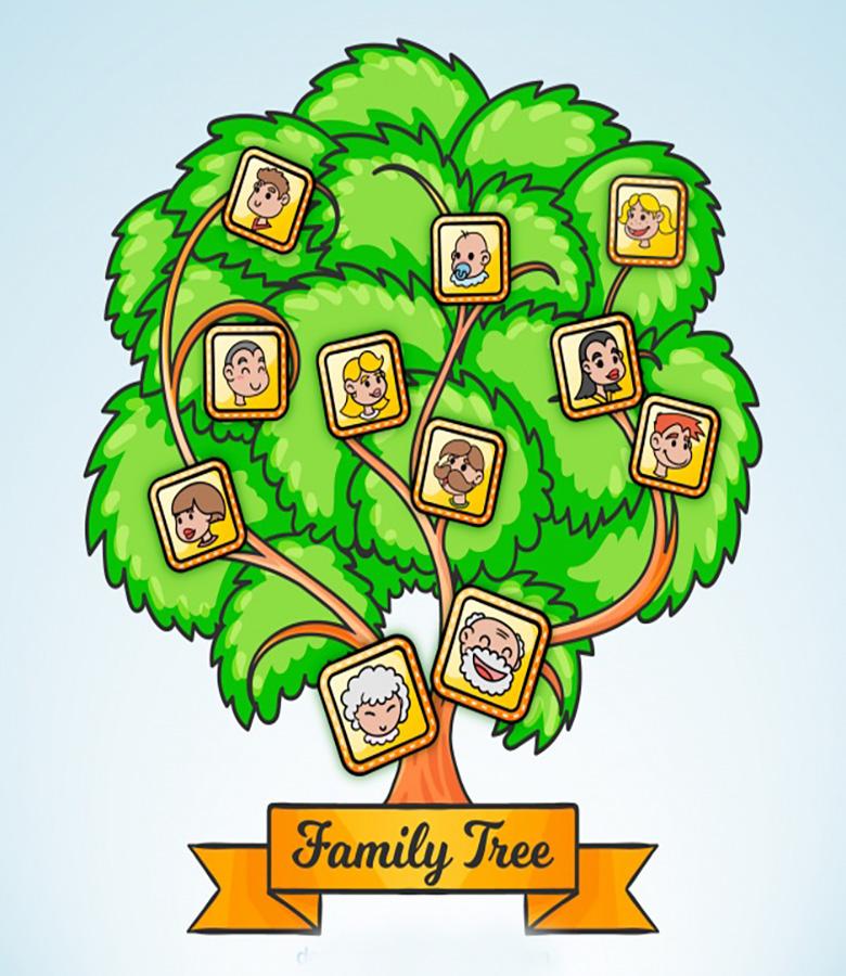 Tout en bas de cet arbre grimpant, on indique le principal porteur du nom de famille, qui peut être un enfant, un père ou une mère. Pour une famille, les conjoints peuvent être choisis comme porteurs du nom de famille, et les proches peuvent être classés par ordre croissant, avec leur photo ou leur nom de famille et leur mien sur le même parallèle.