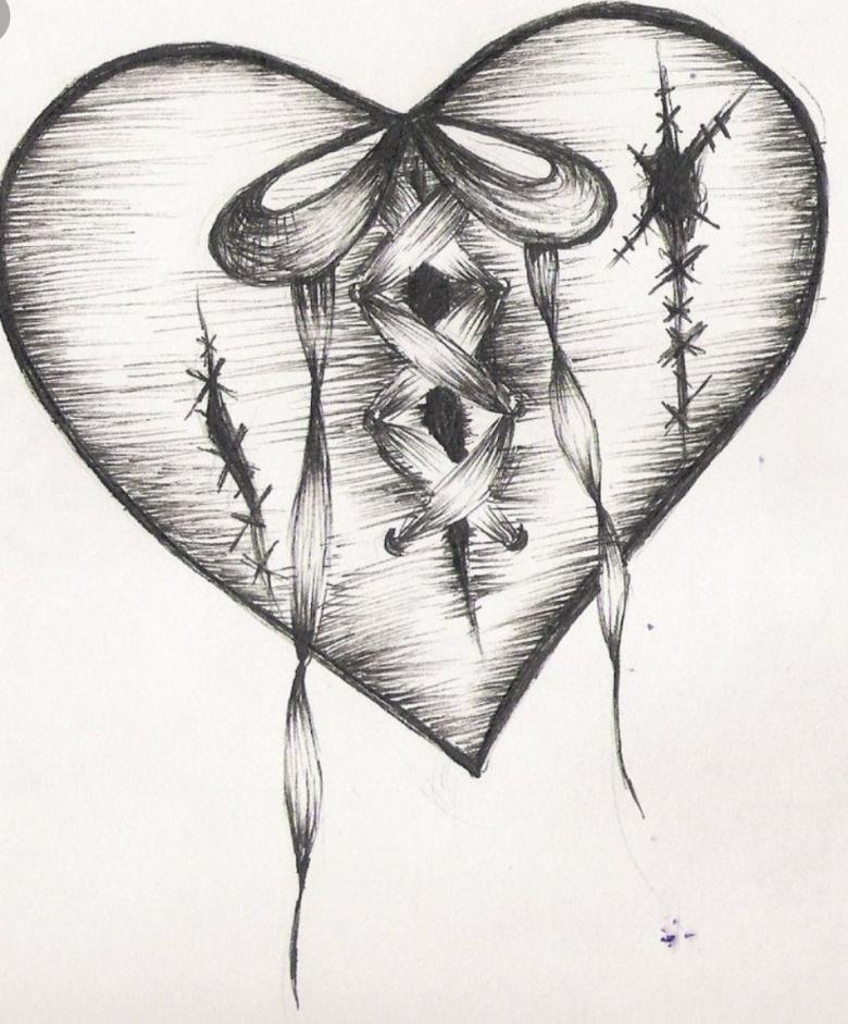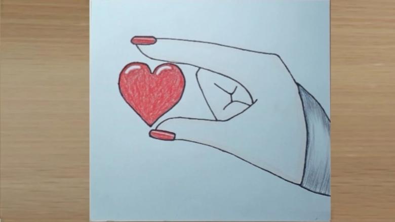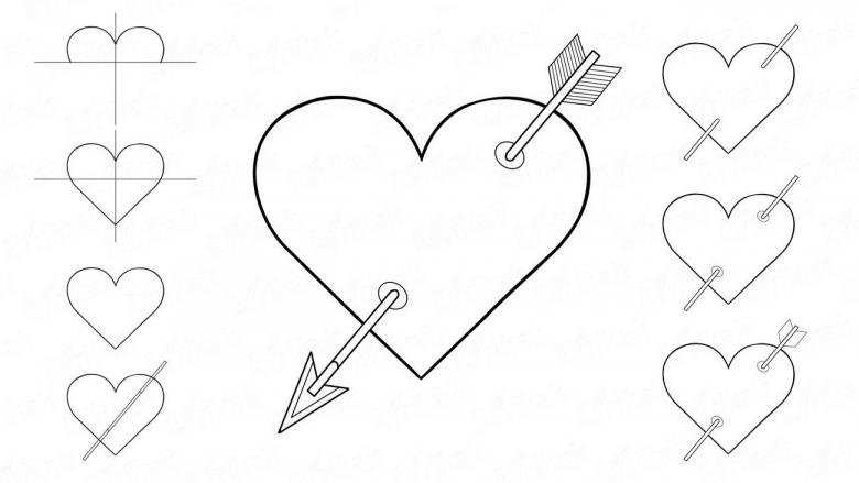 - Vous pouvez maintenant tracer la forme du cœur. Ensuite, vous devez tracer de manière vivante le contour du cœur que vous voyez. Gomme : effacez tous les éléments inutiles.