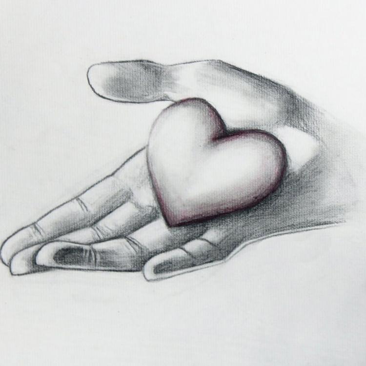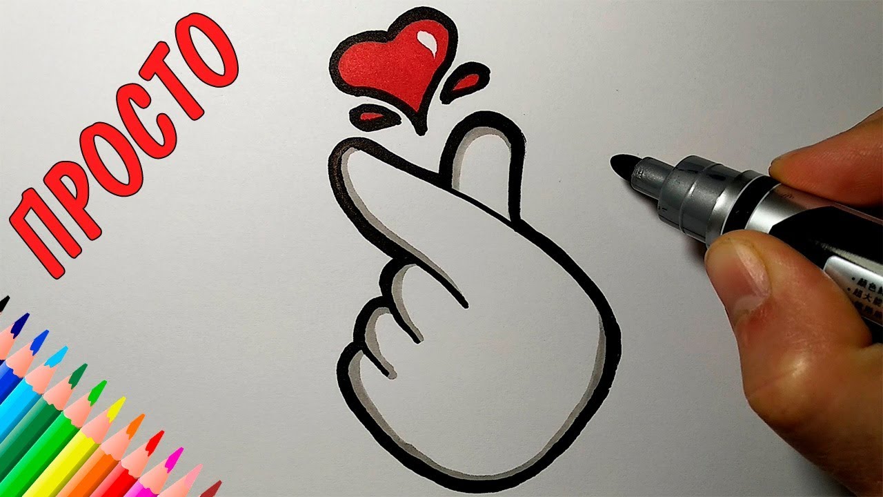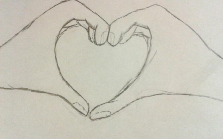 - Tirez doucement les pouces, qui, comme les index, doivent se toucher. C'est la partie inférieure pointue du cœur. Dessinez les contours de la partie interne de la paume. Les doigts arrière doivent également être dessinés, afin que les paumes ne soient pas plates.
