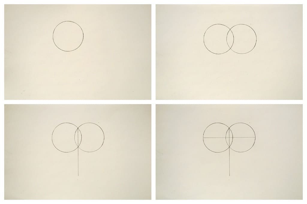 - La première chose à faire est de dessiner deux cercles égaux qui se chevauchent. Ils doivent être en ligne droite.