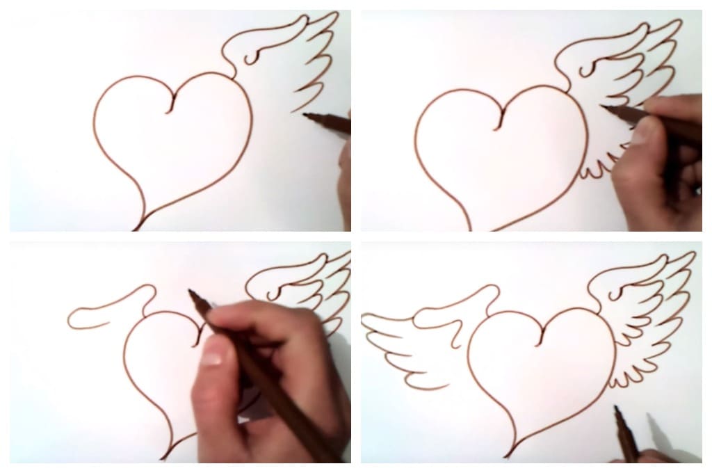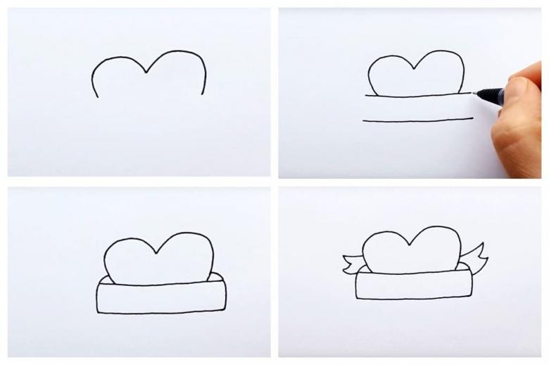 - Lorsqu'il y a déjà deux arcs, tracez plus clairement leurs contours et le cœur est prêt, net et symétrique.