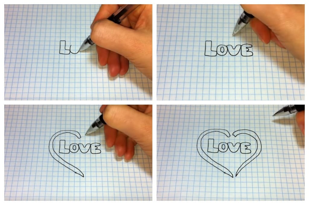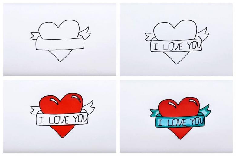 Il s'avère que vous pouvez dessiner un beau cœur de différentes façons : avec des lignes, des tics, des formes géométriques.