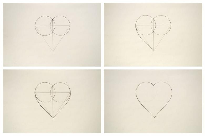 Vous pouvez également dessiner un cœur romantique à l'aide de formes géométriques. Elle sera très régulière et ne prendra pas beaucoup de temps.