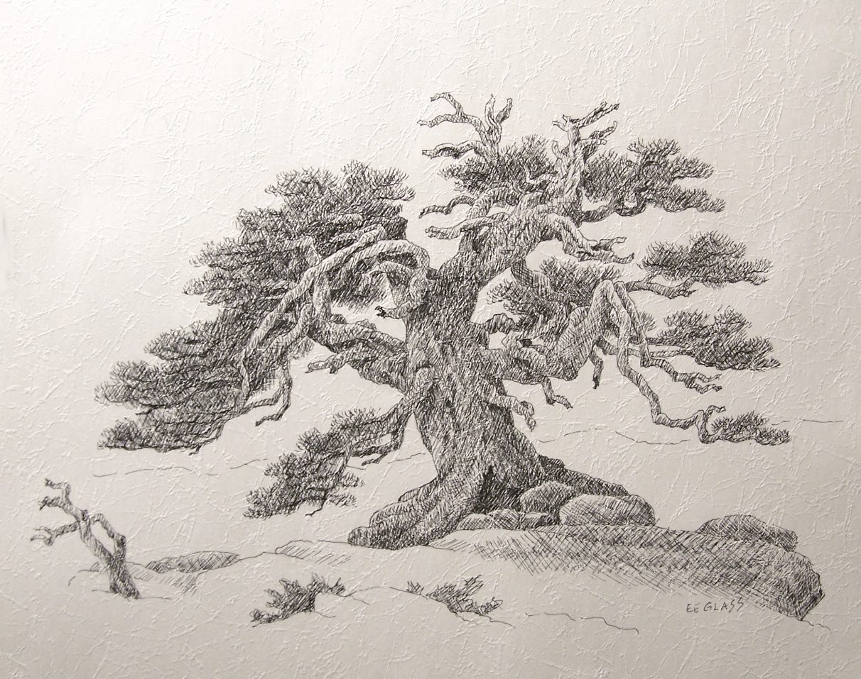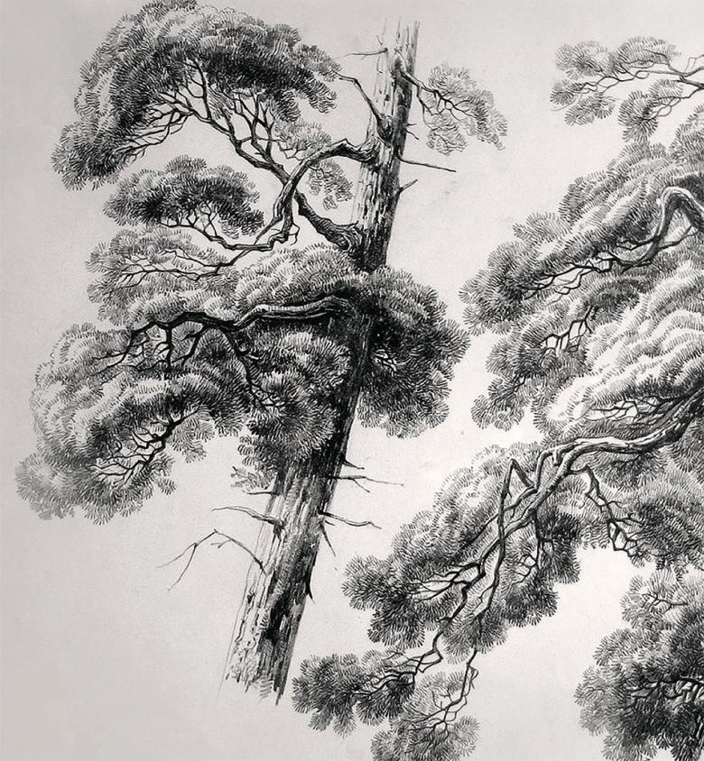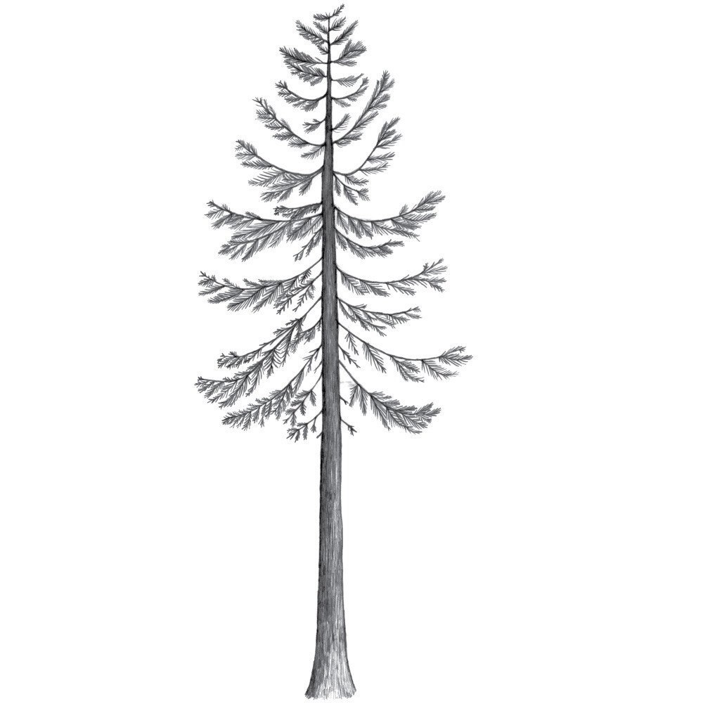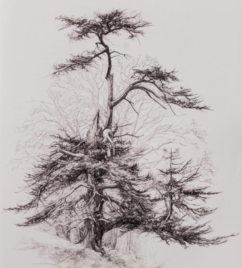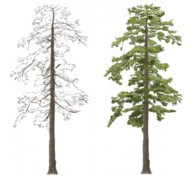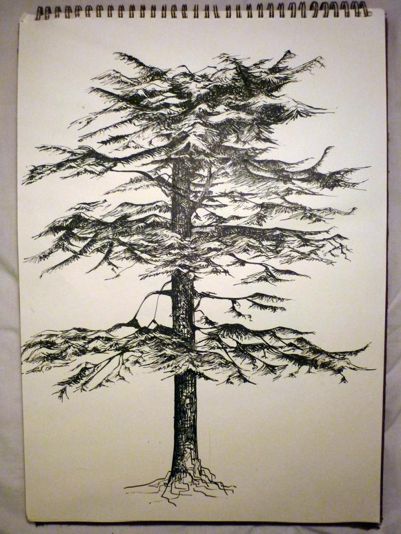 Un pin cèdre est dessiné selon un schéma différent.