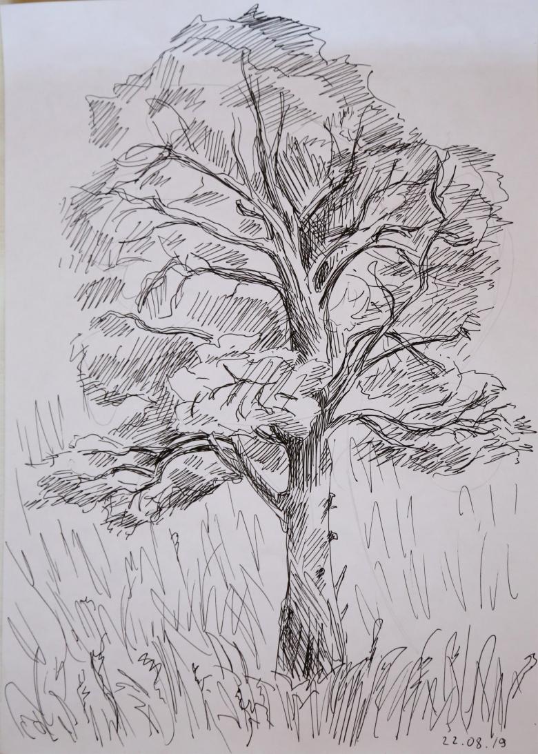 - Sous les branches inférieures, une large jambe de tronc est terminée et le tableau est prêt à être colorié.