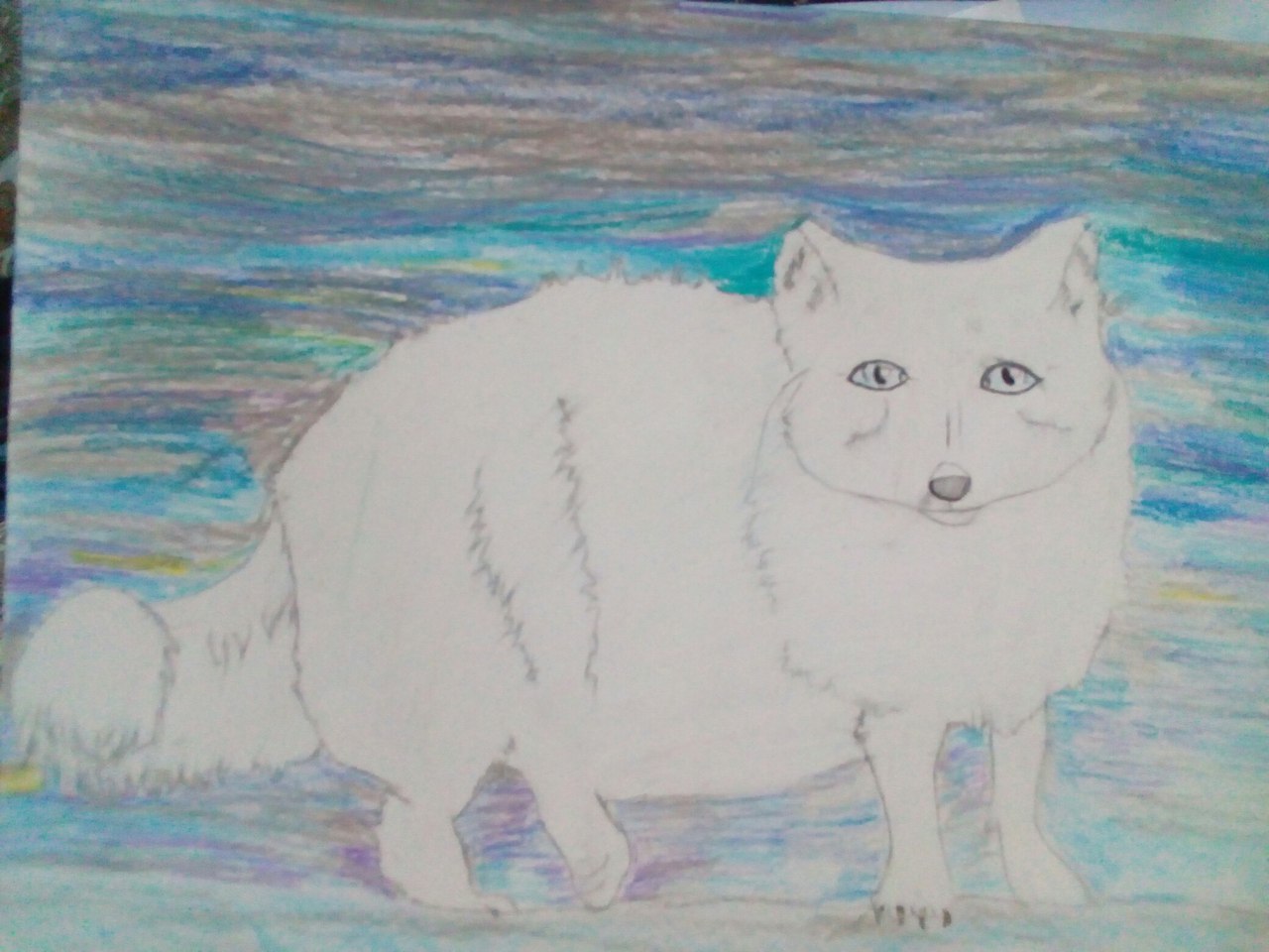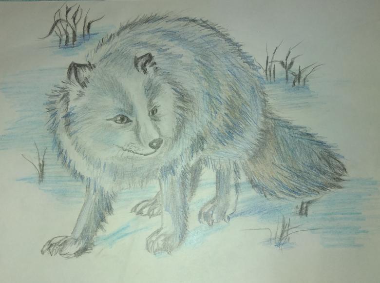 Lorsque vous réfléchissez à la manière de dessiner les animaux de la toundra, vous pouvez vous référer à l'image d'un animal qui ressemble à un renard. Un ovale est le dos, un petit cercle est le futur museau. Combinez le corps avec des lignes lisses, en ajoutant des détails : queue en peluche, pattes, yeux et nez. Les traits en zigzag représentent la fourrure.