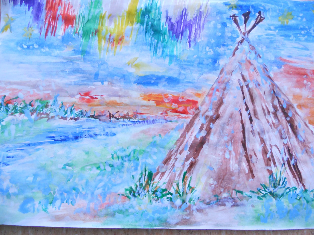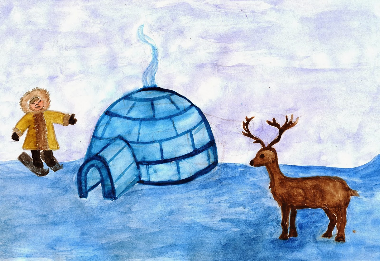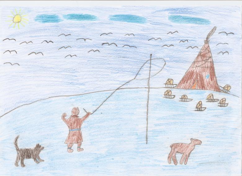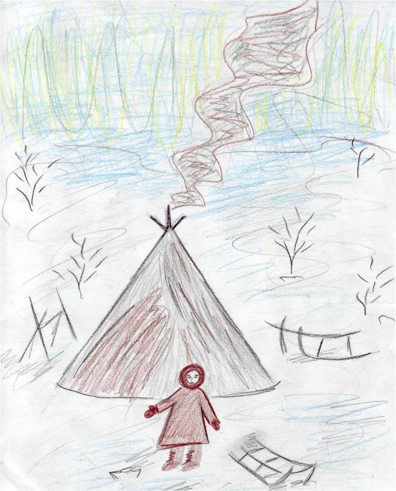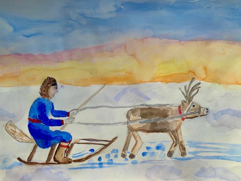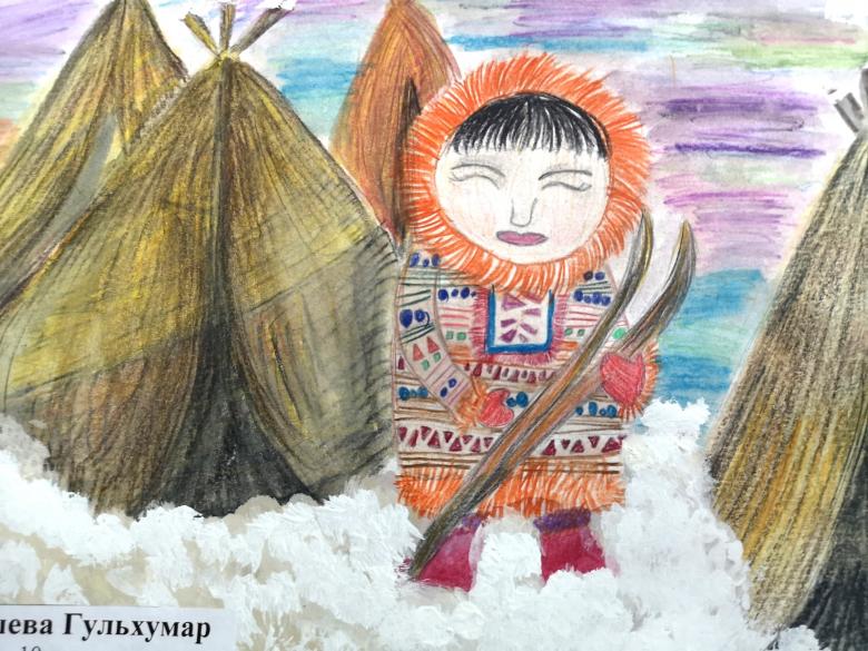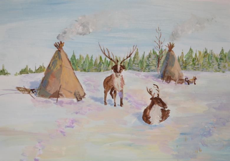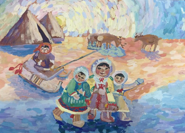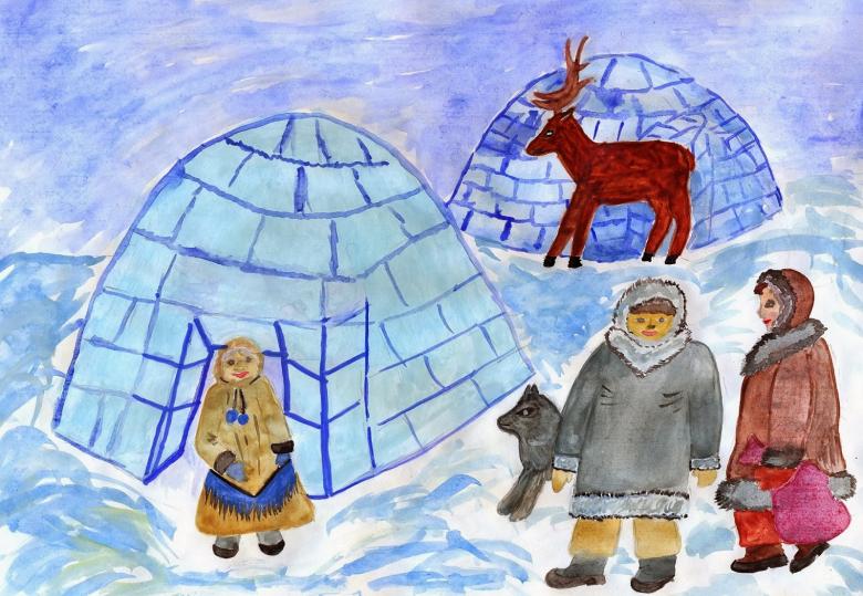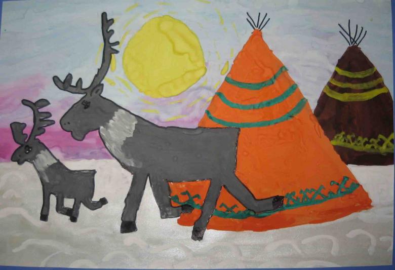 Étudiez d'abord la ou les photos, en choisissant la saison et les objets qui seront présents dans l'image. Sur une plaine blanchie à la chaux, il convient de représenter une yaranga, une tente-triangle faite de peaux d'animaux - c'est la maison du peuple Nenets.