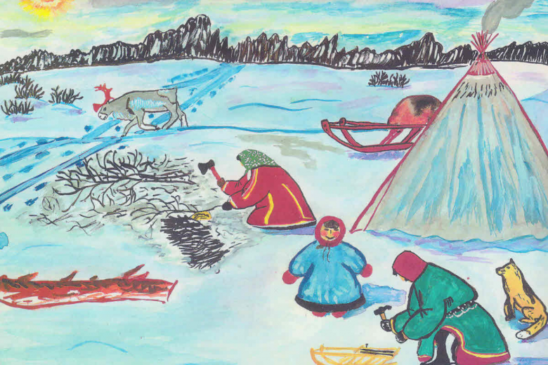 Les gens peuvent aller pêcher, s'asseoir au coin du feu, garder des rennes. Ils portent des vêtements nationaux spécifiques, une malitsa, c'est-à-dire un long manteau garni de fourrure, des ornements et des bottes hautes aux pieds.