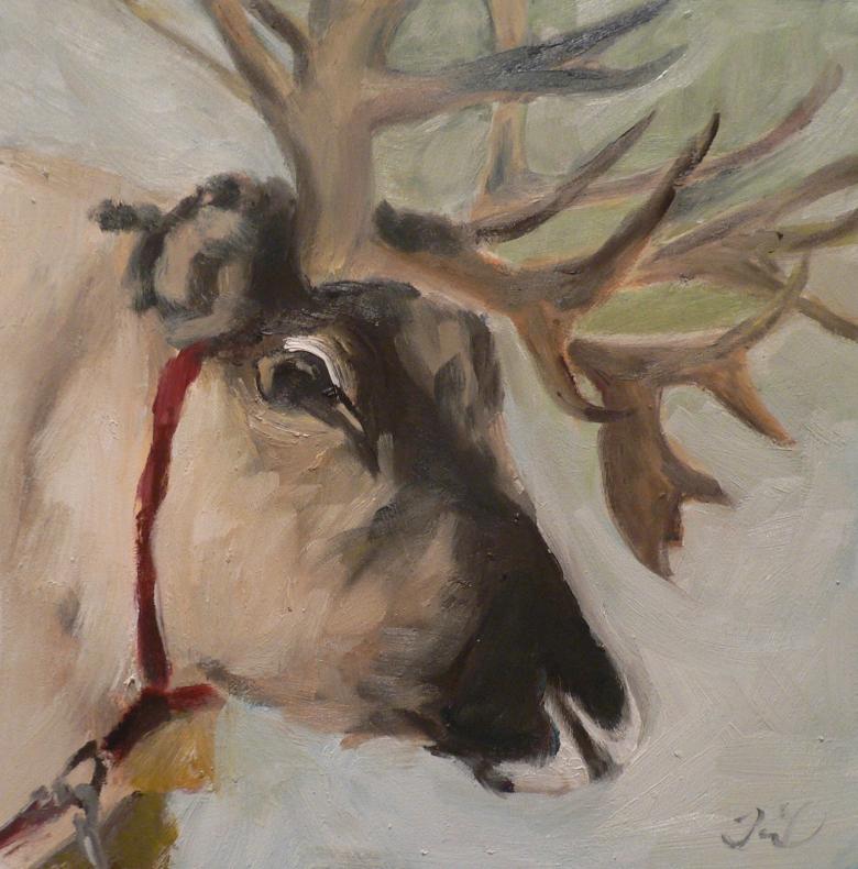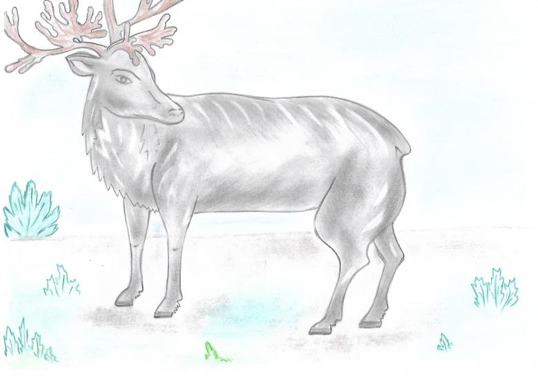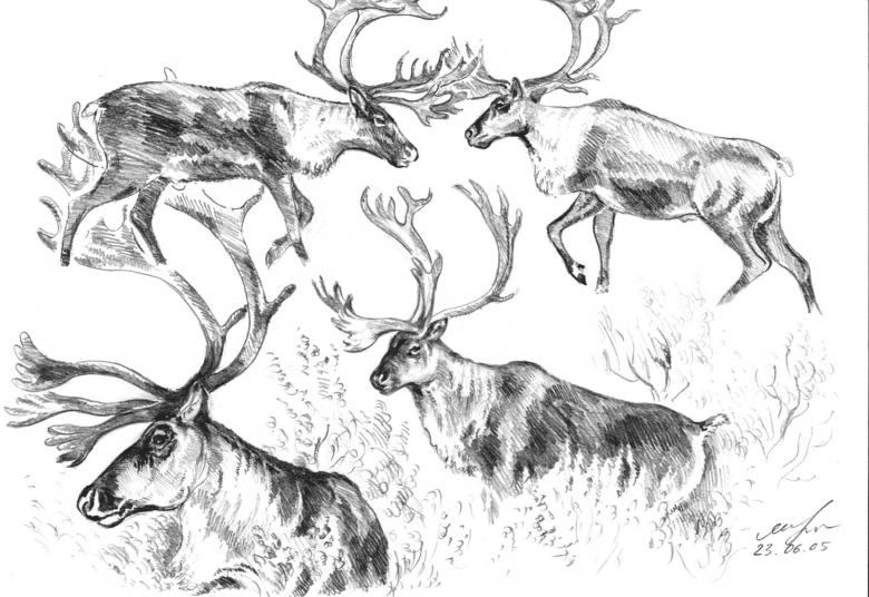 Les rennes sont indigènes à la région de la toundra. Il possède un torse trapu et puissant qui doit être décomposé en trois segments, marquant la croupe, la poitrine et le plus petit cercle de la tête. Les figures obtenues sont tracées au crayon pour former le contour de base.