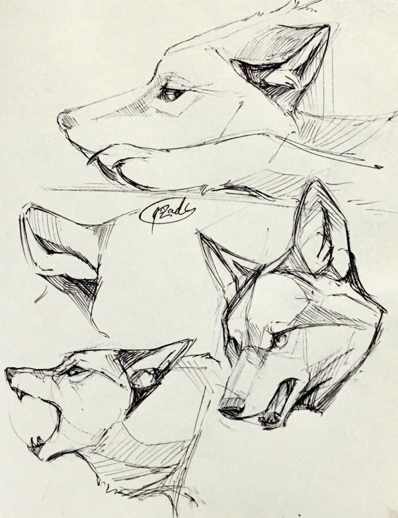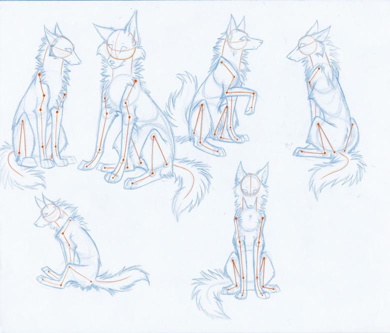 - Dans un premier temps, le corps du loup est conventionnellement divisé en éléments distincts, qui sont reliés entre eux par des lignes fluides. Le cercle comme esquisse de la tête est divisé en quatre parties.