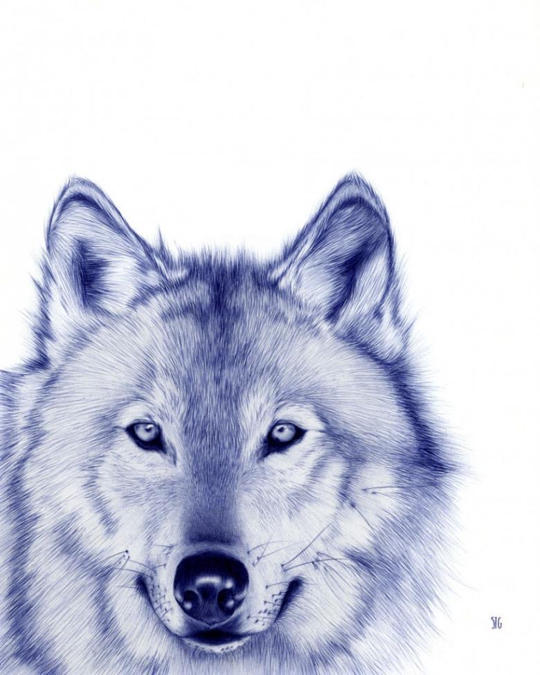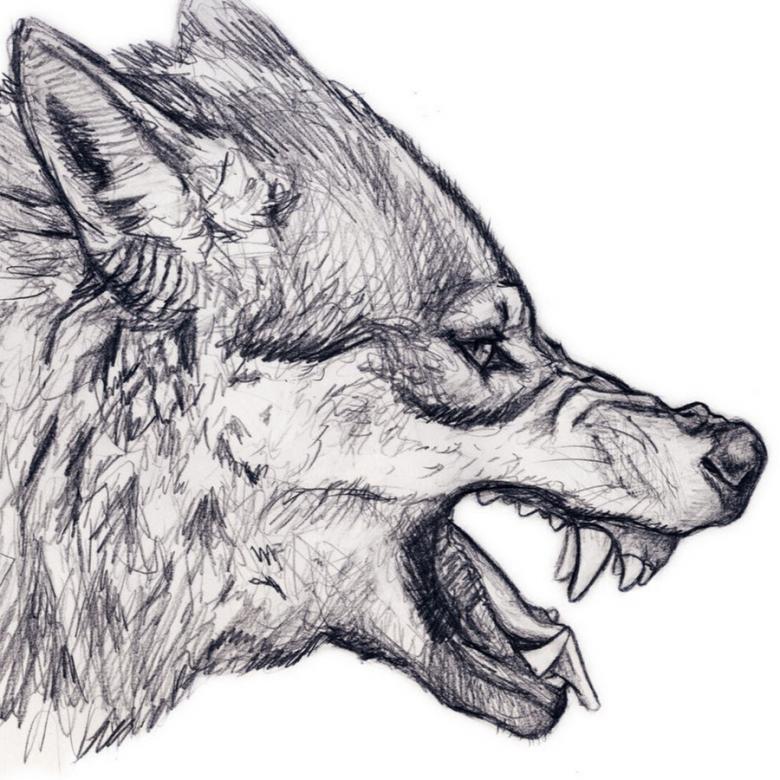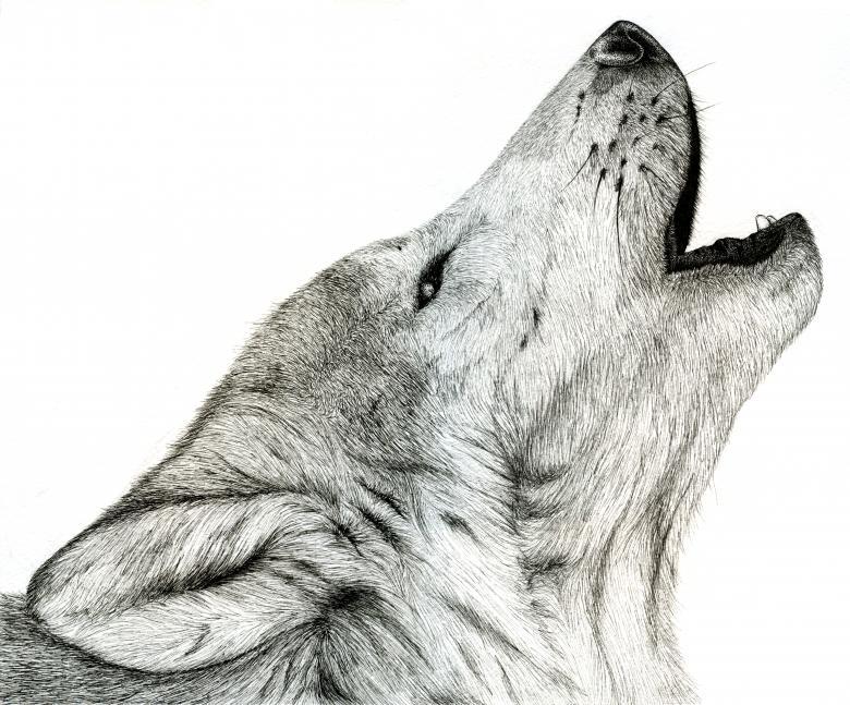 - Des dents fines le long du contour de la tête du loup, la fourrure est dessinée.