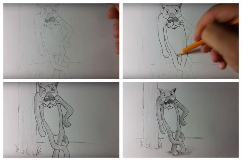 - Le torse de l'animal, ses pattes avant et une partie de sa patte arrière sont esquissés.