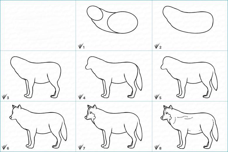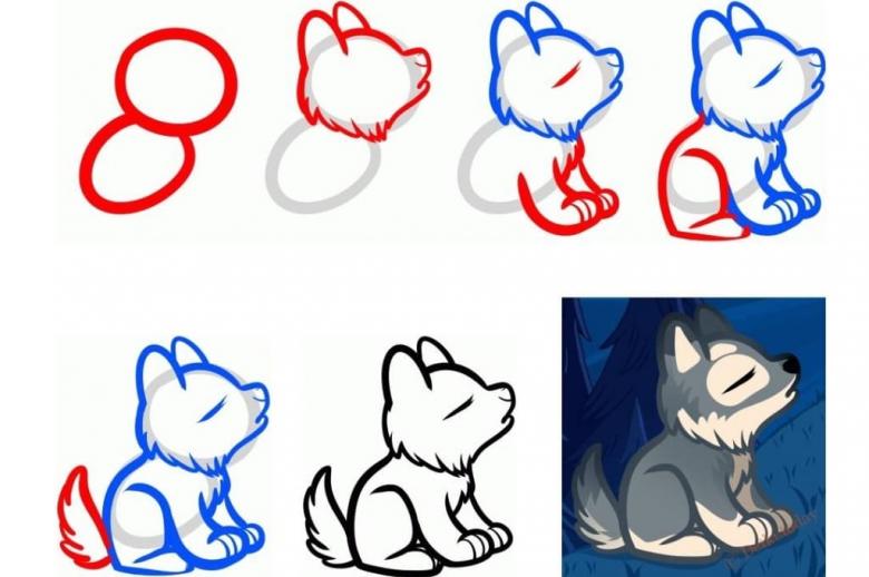 Il est plus facile pour un enfant de comprendre comment dessiner un beau loup, si toutes les étapes sont décrites pas à pas. Puis, en passant étape par étape, le jeune artiste parviendra au résultat souhaité :