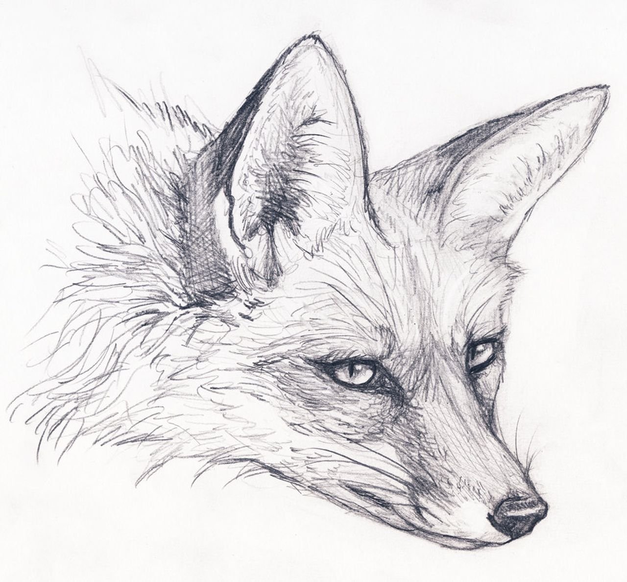 - Commencez l'esquisse par la tête - au milieu, tracez une ligne en forme d'arc aux bords de laquelle les oreilles, semblables à des triangles, doivent "apparaître". Sur leurs faces externes, elles mènent vers le bas dans le prolongement de la silhouette de cette partie de l'animal.