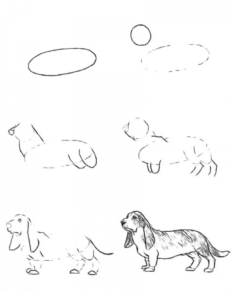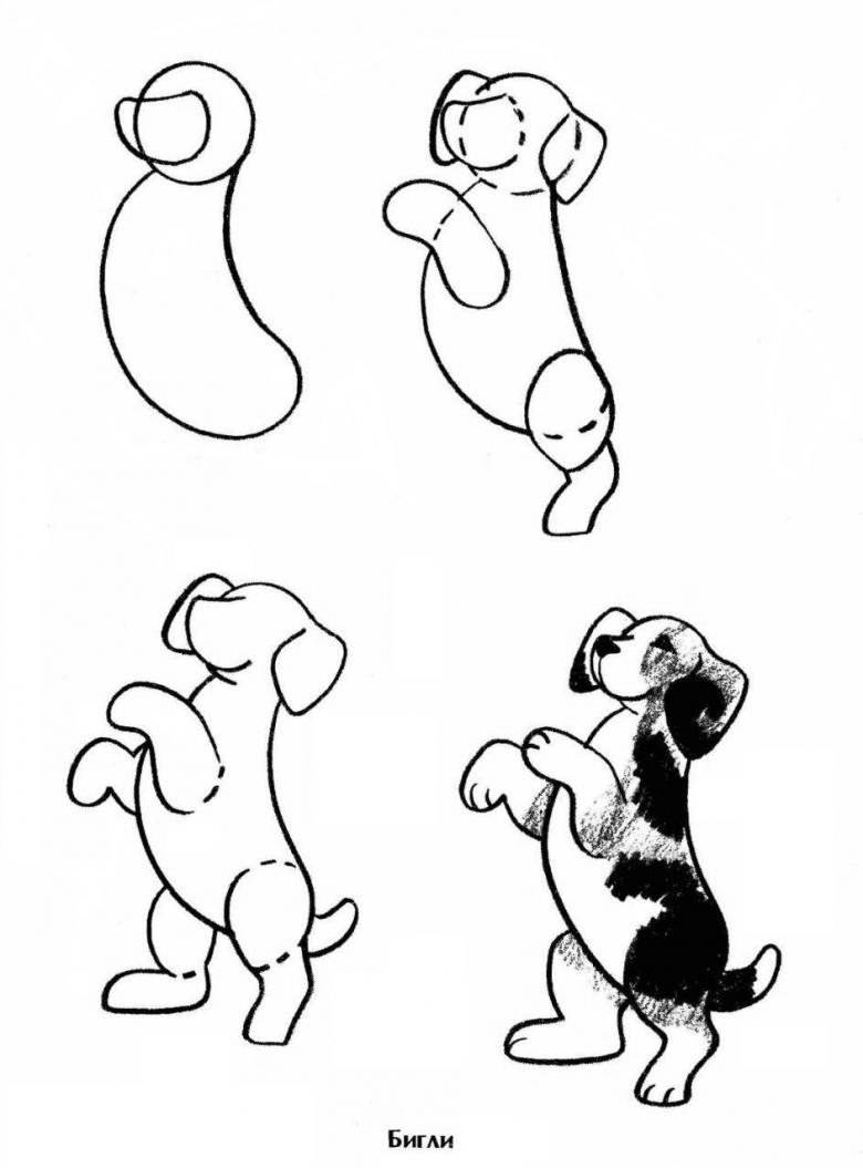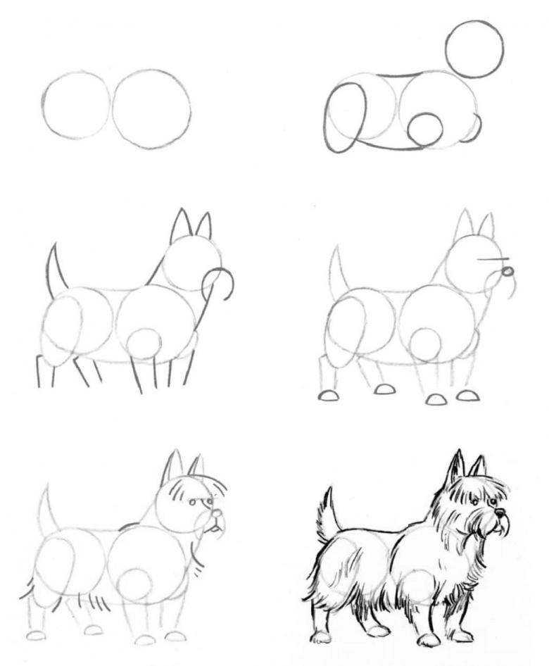 C'est un ami fidèle de l'homme, c'est pourquoi les enfants préfèrent souvent cette image aux autres. Il est plus approprié de placer un petit chiot dans une boîte ou sur une pelouse. Un stylo ou un crayon est utilisé dans le travail.