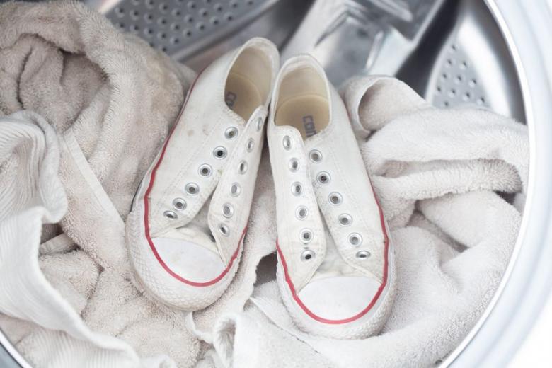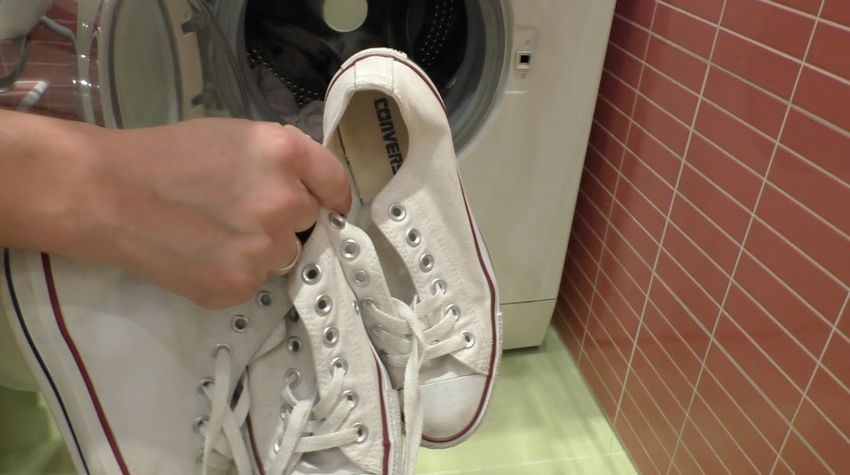 Il est préférable de laver les pantoufles blanches et les baskets à la main, afin qu'elles ne "rétrécissent" pas et ne se déforment pas.