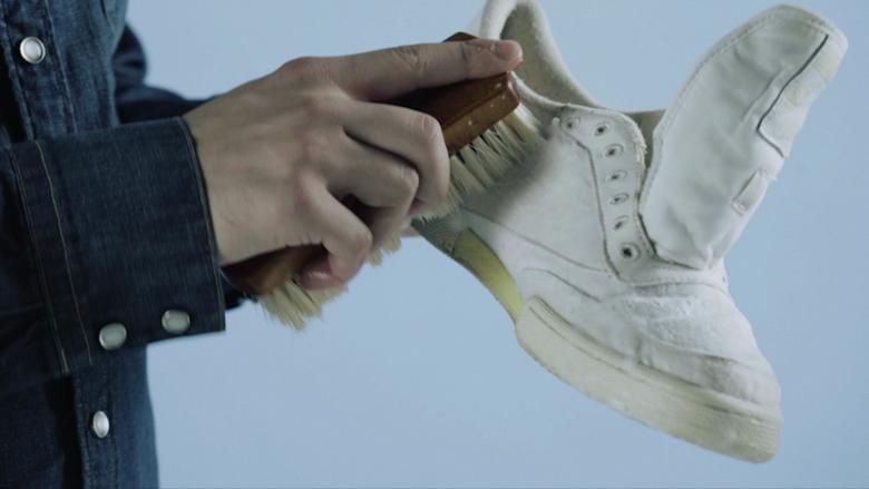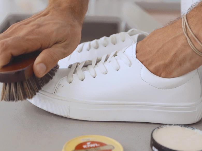 Si vos baskets ne sont pas très sales, une lingette humide fera l'affaire. Et pour terminer le travail, vous pouvez appliquer un cirage pour chaussures.