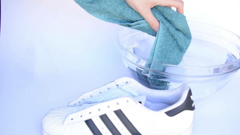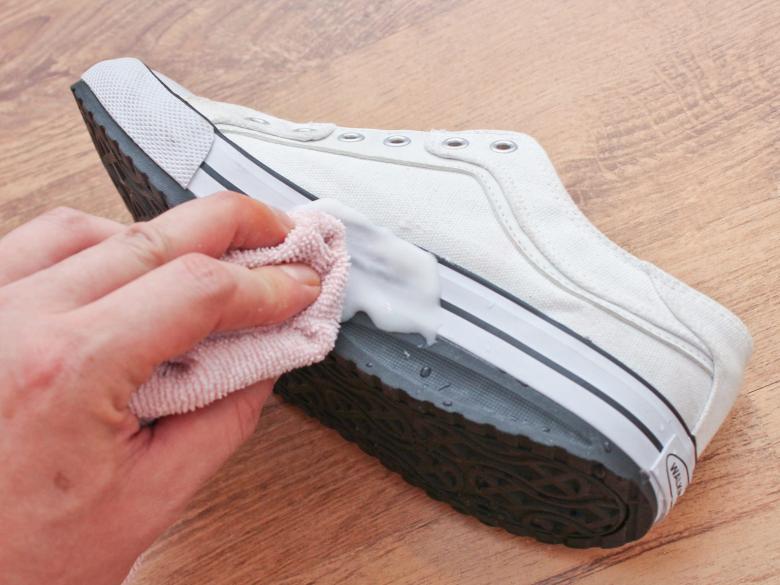 Mélangez les deux ingrédients dans un rapport de 1 à 5 et essuyez la surface souillée de la chaussure avec un chiffon.