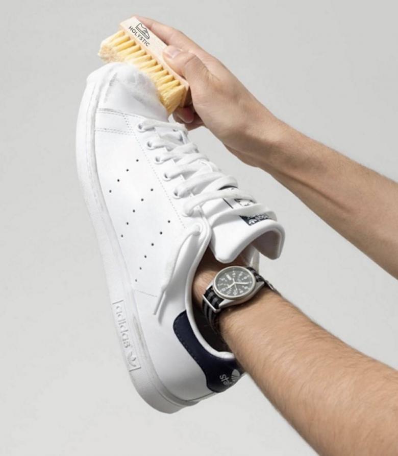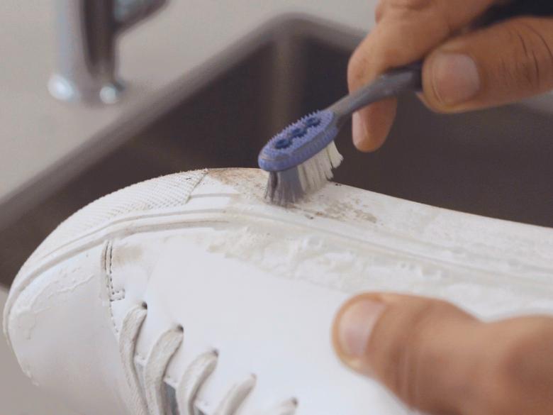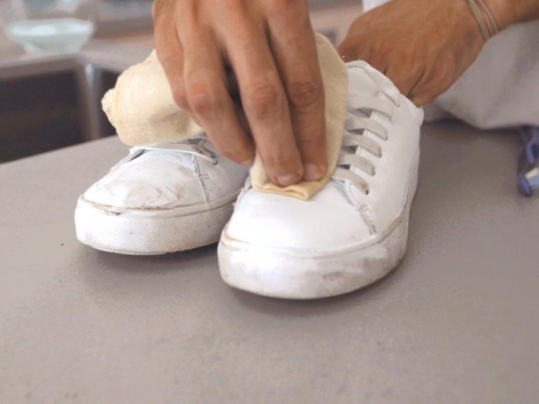 Grâce à son utilisation, vous pouvez éliminer localement une tache sur des baskets blanches.