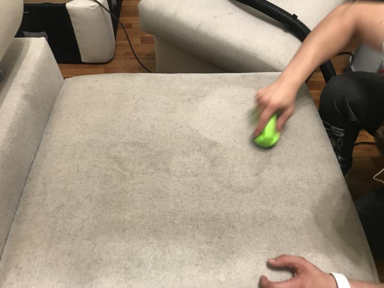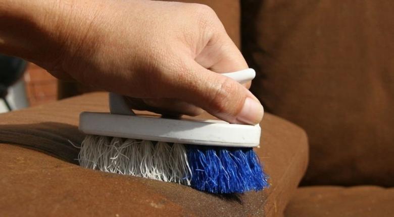 Les taches simples et fraîches peuvent être éliminées avec une simple solution de savon. Vous pouvez soit savonner soigneusement le chiffon et le tamponner sur la saleté, soit diluer le savon dans de l'eau et vaporiser le canapé avec un vaporisateur.