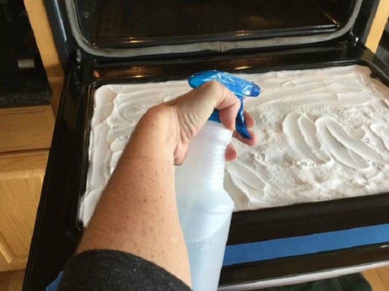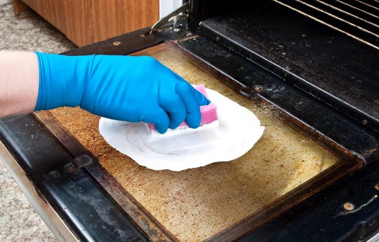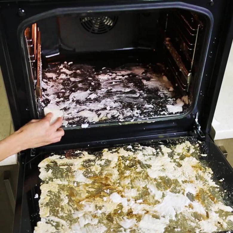 À la fin de la procédure, essuyez à nouveau le four avec une éponge humide.
