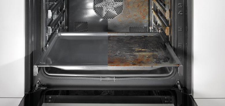 Lorsque la procédure est terminée, le four est refroidi, l'eau est enlevée et la graisse est enlevée avec un chiffon. Les salissures plus anciennes peuvent nécessiter un second nettoyage.