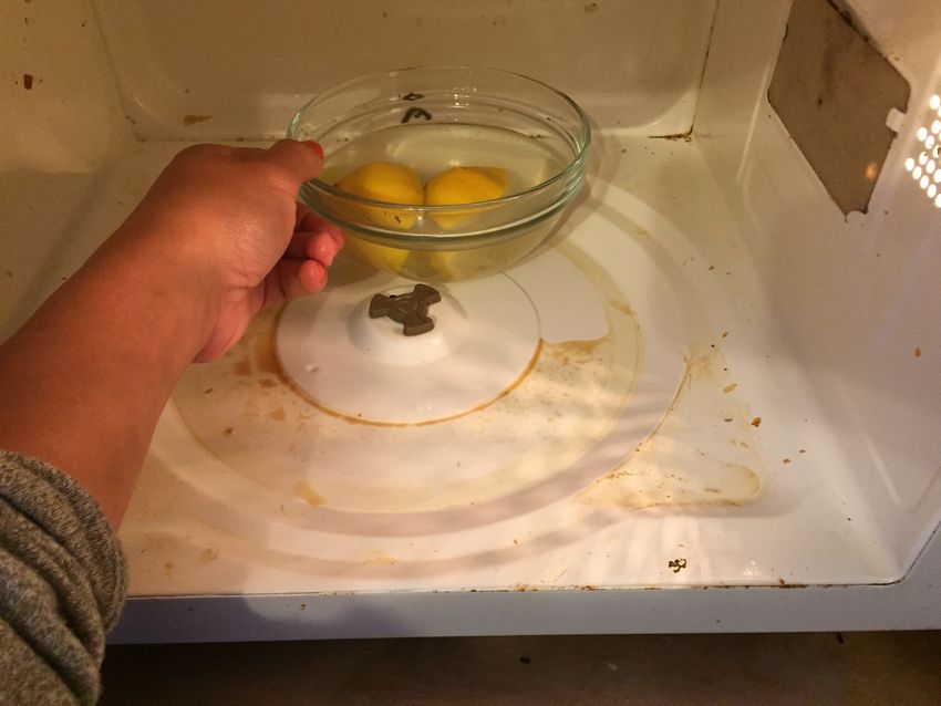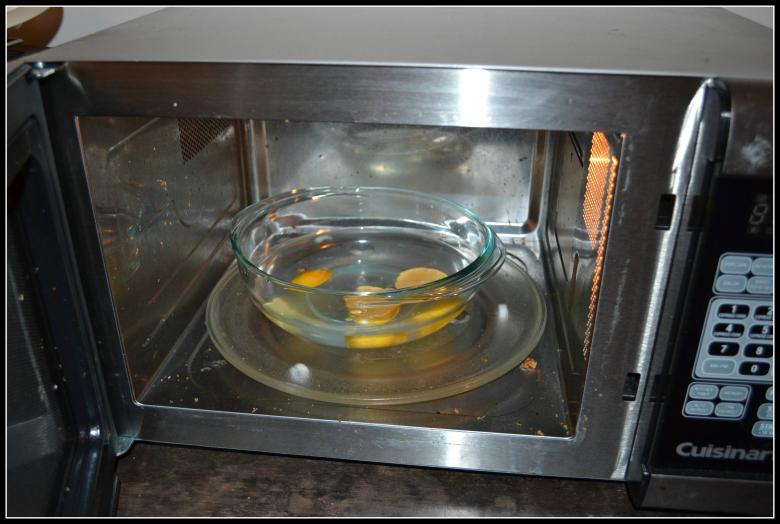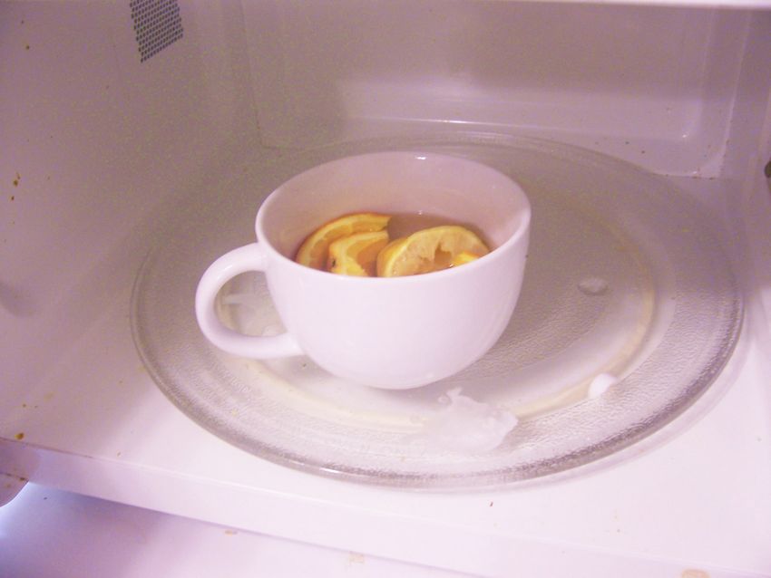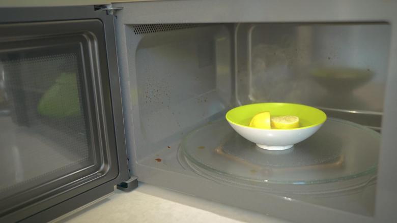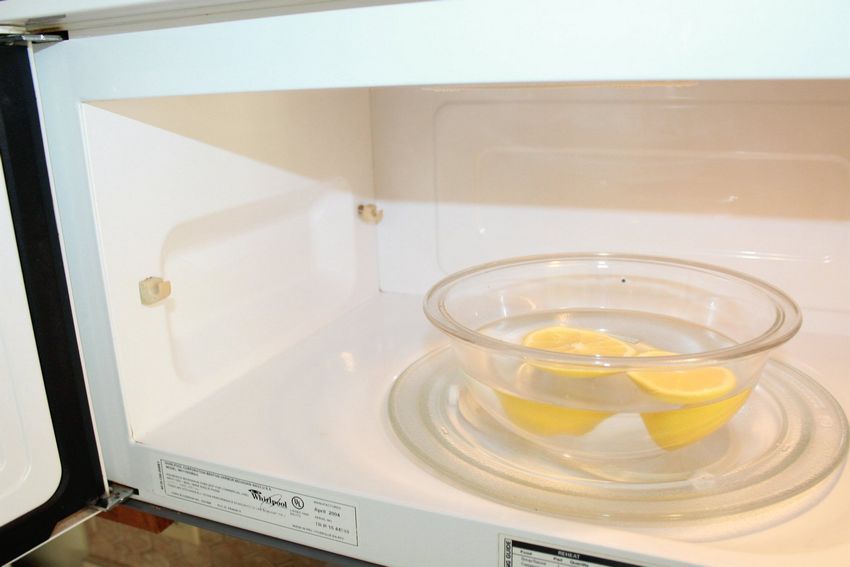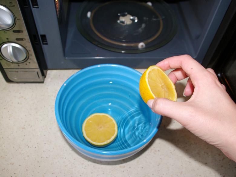 Le citron ne doit pas être pelé avant d'être utilisé, les huiles essentielles aideront également à se débarrasser de l'odeur désagréable dans le micro-ondes. Des cercles de citron préparés ou de l'acide citrique (0,5 cuillère à café pour 1 litre) sont placés dans un récipient avec de l'eau, puis placés dans le four pendant 3 à 5 minutes, en le mettant à pleine puissance.