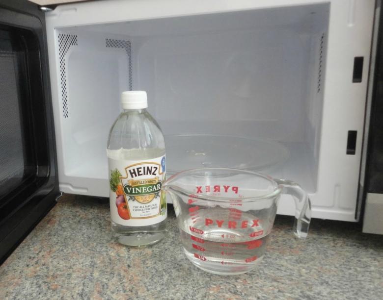 Lors du traitement des parois internes de la cavité du micro-ondes, le citron ou l'acide citrique peuvent être remplacés par du vinaigre (9%). Ajoutez le liquide utilisé pour la cuisson à l'eau (2 à 3 cuillères à soupe par litre de liquide) et placez le tout dans le micro-ondes en le mettant à pleine puissance (3 à 5 minutes de fonctionnement intensif).