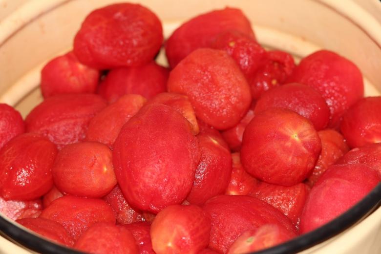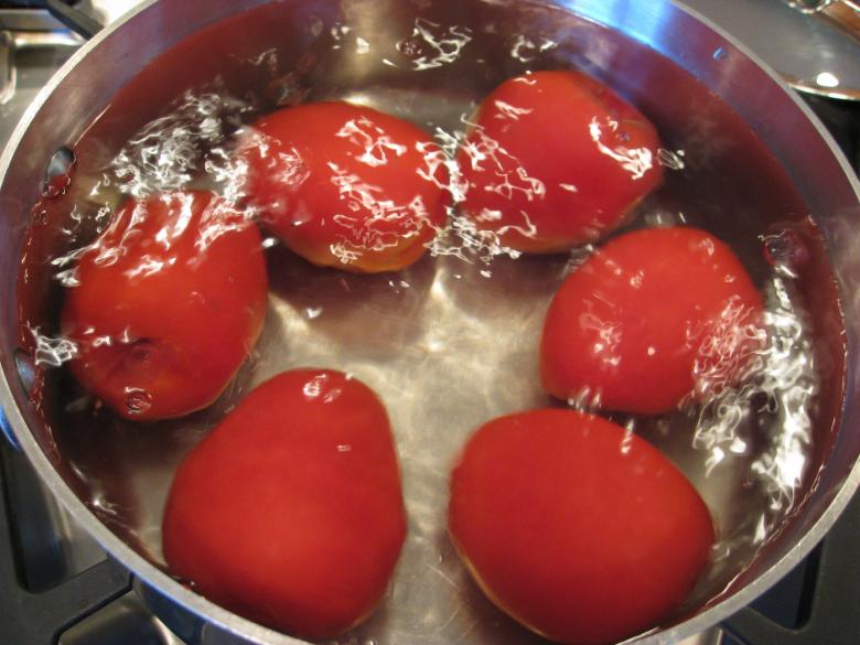 Attention : si le temps de cuisson est insuffisant et que la peau n'est pas pelée, retraiter les tomates d'une autre manière, sinon elles perdront leur forme.