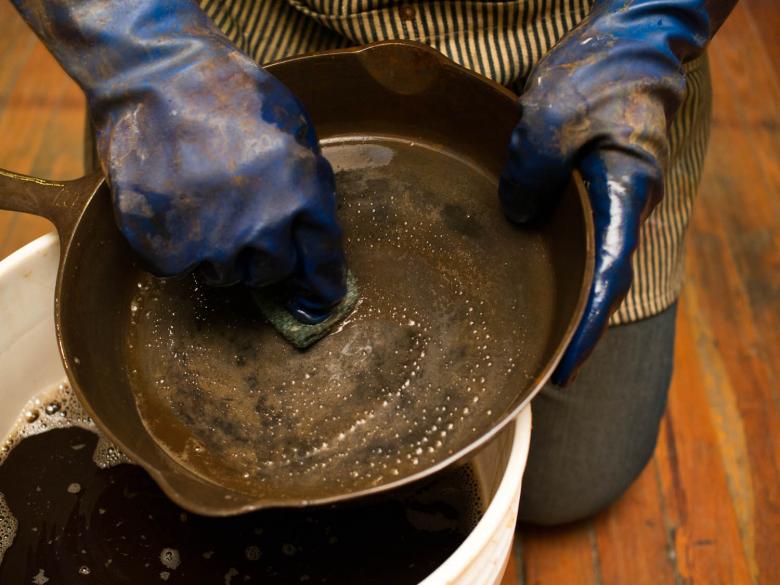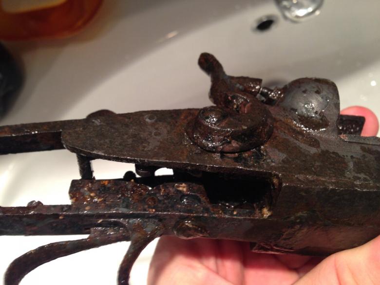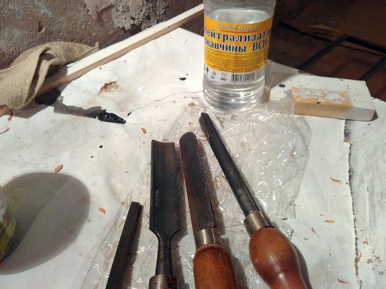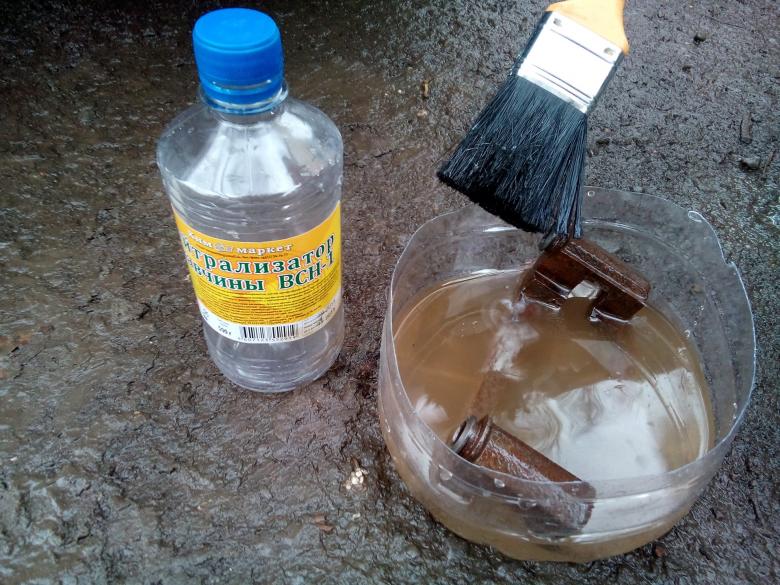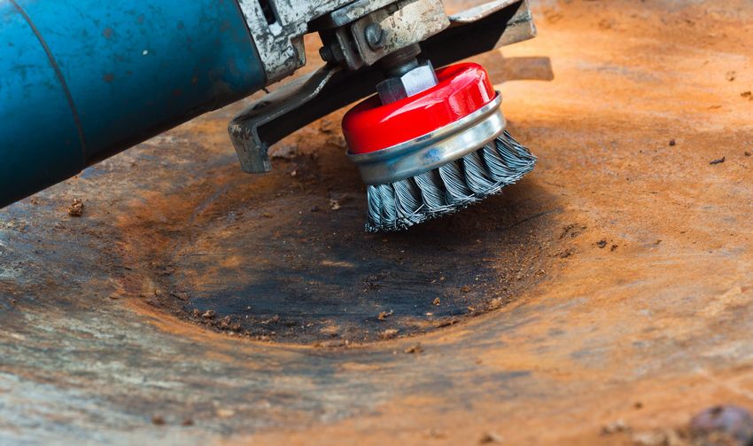 Une fois terminé, la surface est nettoyée avec une brosse en fer blanc. S'il reste de la rouille. Le processus est répété jusqu'à ce qu'il soit complètement propre.