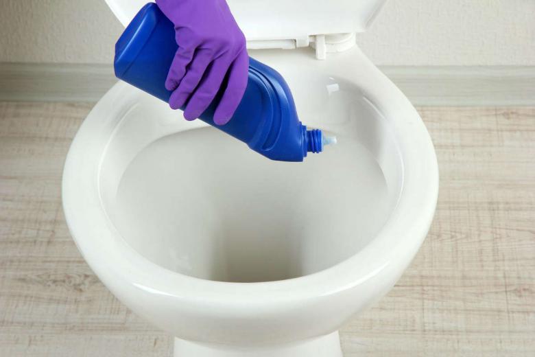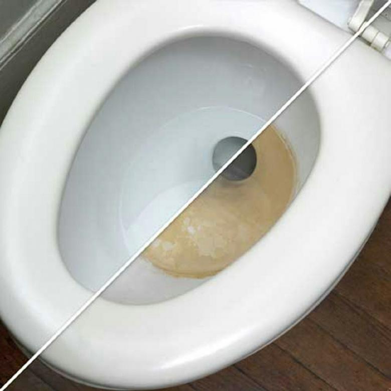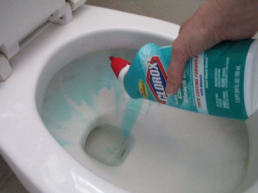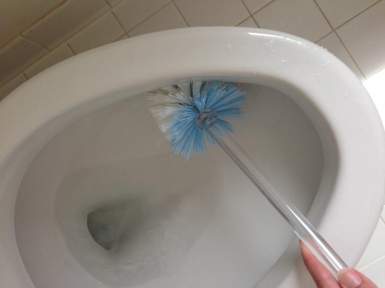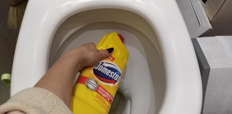 Une distribution uniforme est observée et le couvercle des toilettes est abaissé. Attendez 2-3 heures ou toute la nuit, selon la complexité de la saleté. Le matin, une brosse de nettoyage de bonne qualité est utilisée et l'eau est vidée.