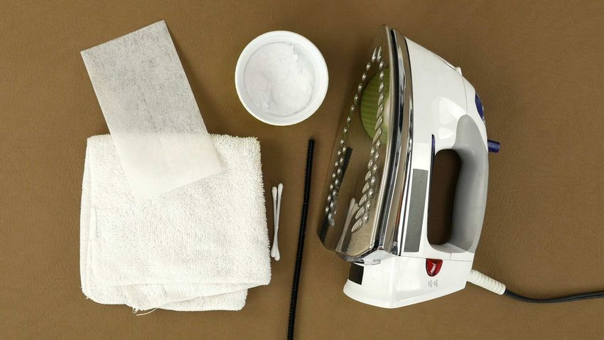 - Pas besoin d'inventer ou d'expérimenter, un crayon spécial vous aidera. Il peut être acheté dans les ateliers de couture ou les centres commerciaux. Vous devez chauffer l'appareil, frotter la semelle du crayon. Le processus de fusion commence, et il peut être nettoyé de manière fiable ;