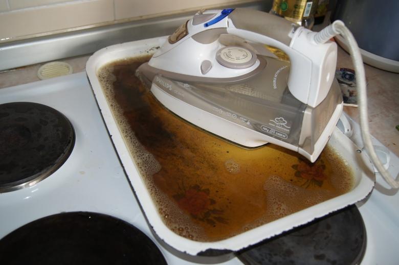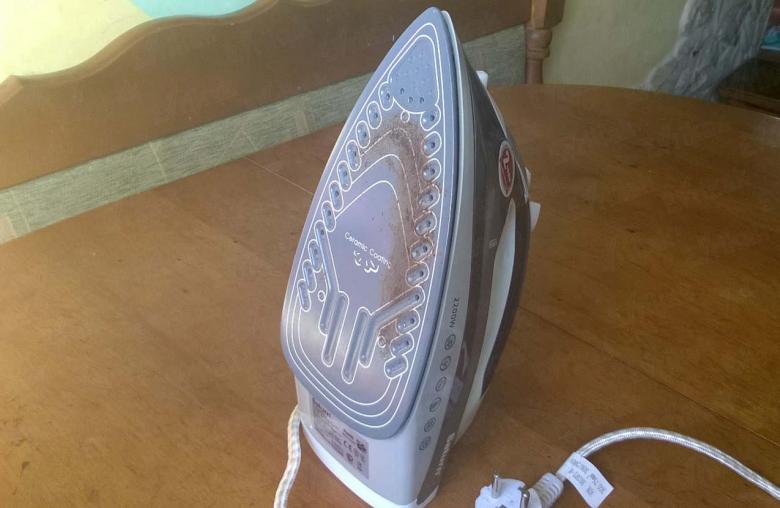 Ne paniquez donc pas en pensant que c'est la fin de vie de l'appareil, car comment nettoyer un fer qui a été amené à ce point ? Le problème peut être résolu, mais cela dépend en grande partie du degré de saleté du fer :