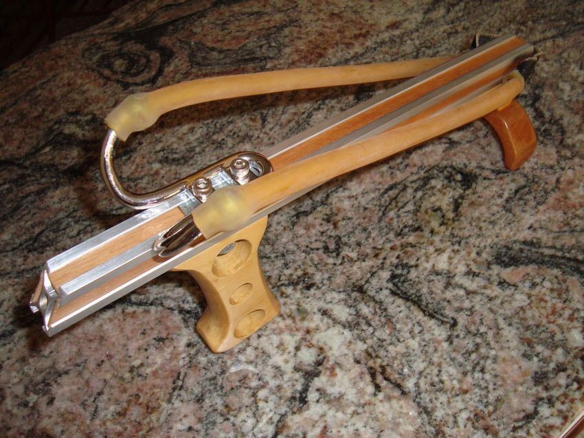 La fabrication de la crosse ne diffère pas sensiblement de l'arbalète décrite ci-dessus, la seule nuance est un trou rectangulaire pour le mécanisme de détente.