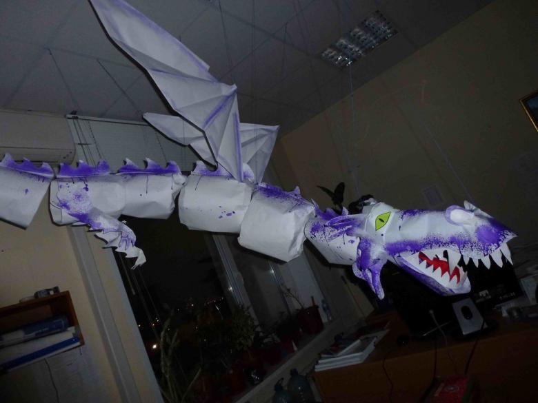 Un excellent dragon en papier peut même être fabriqué par des enfants. Son corps tridimensionnel se compose de plusieurs demi-cercles en papier et d'une queue et d'une tête, que vous pouvez dessiner vous-même ou utiliser un modèle.