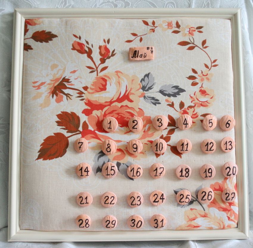 Examinons quelques options qui intéresseront les amateurs d'auto-organisation. Il s'agit d'une activité amusante et accessible à tous. Les enfants et toute la famille peuvent être impliqués. Calendrier pratique et lumineux - une excellente décoration de la maison, de la chambre d'enfant, de la cuisine, du salon.