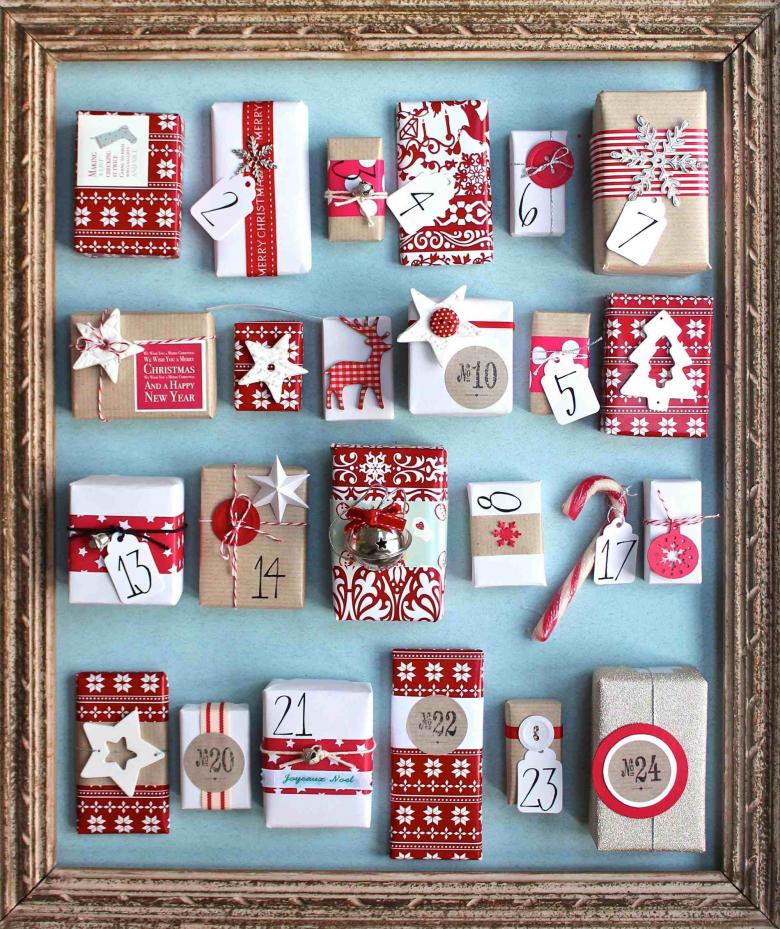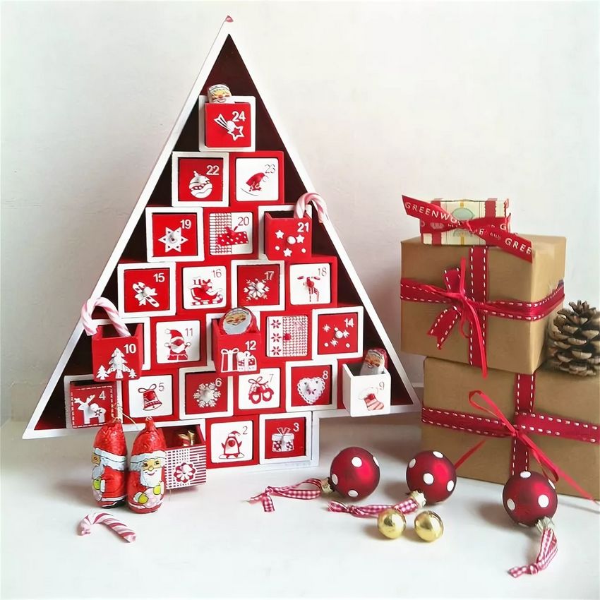 Recommandation : Un modèle intéressant de calendrier de l'Avent est une grande boîte avec des cases rétractables pour les dates. Il s'agit d'environ 28-30 boîtes, pour le mois précédant Noël. Les cadeaux à l'intérieur doivent être d'une taille appropriée. Ce type de boîte peut être utilisé chaque année pour préparer la fête.
