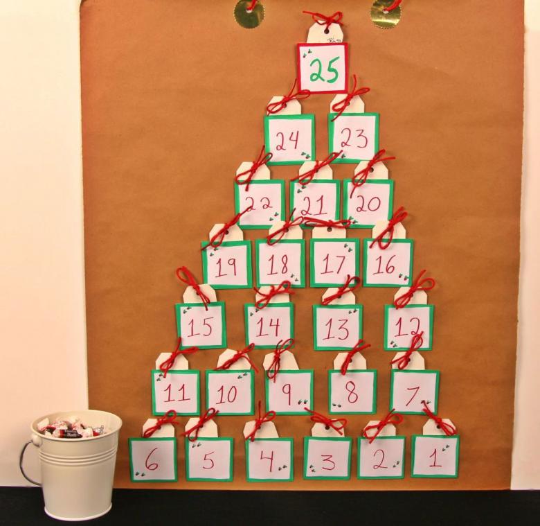 Les calendriers de l'Avent ont souvent la forme d'un sapin de Noël. Elle est utilisée pour le mois de décembre afin de créer une atmosphère festive. Mais il est possible de réaliser de tels formats de calendrier pour n'importe quel mois où la famille a le plus de vacances.