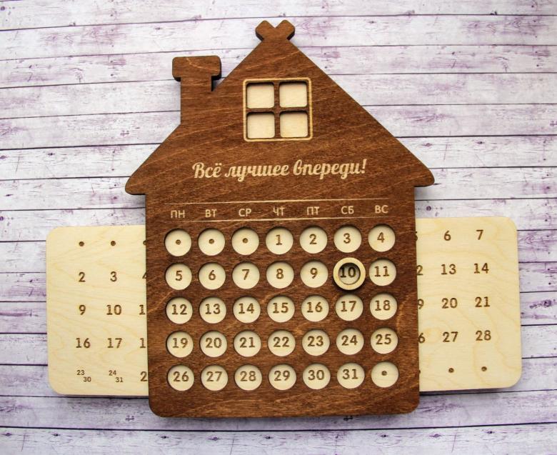 Une autre option est une plaque mobile avec des trous et les noms des jours de la semaine superposés aux dates. Le résultat est un article intéressant et pratique pour toutes les occasions. Un tel calendrier fonctionne chaque année avec un nouveau visage, sans accrocs ni problèmes.
