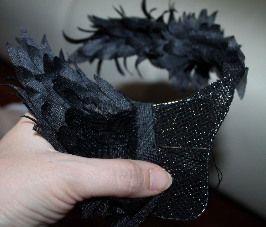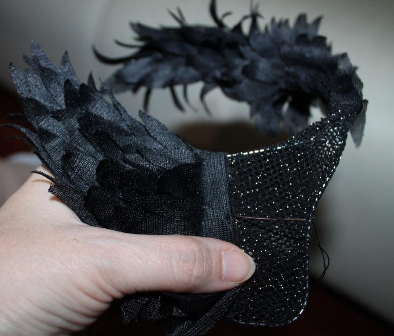 - Cousez les plumes par le dessous de la pièce. Attachez les plumes en haut, le bas doit rester libre.
