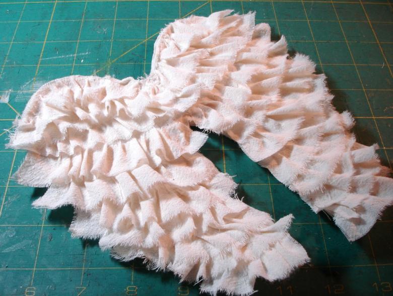 - Découpez des formes d'ailes dans le tissu et drapez-les autour du cadre.