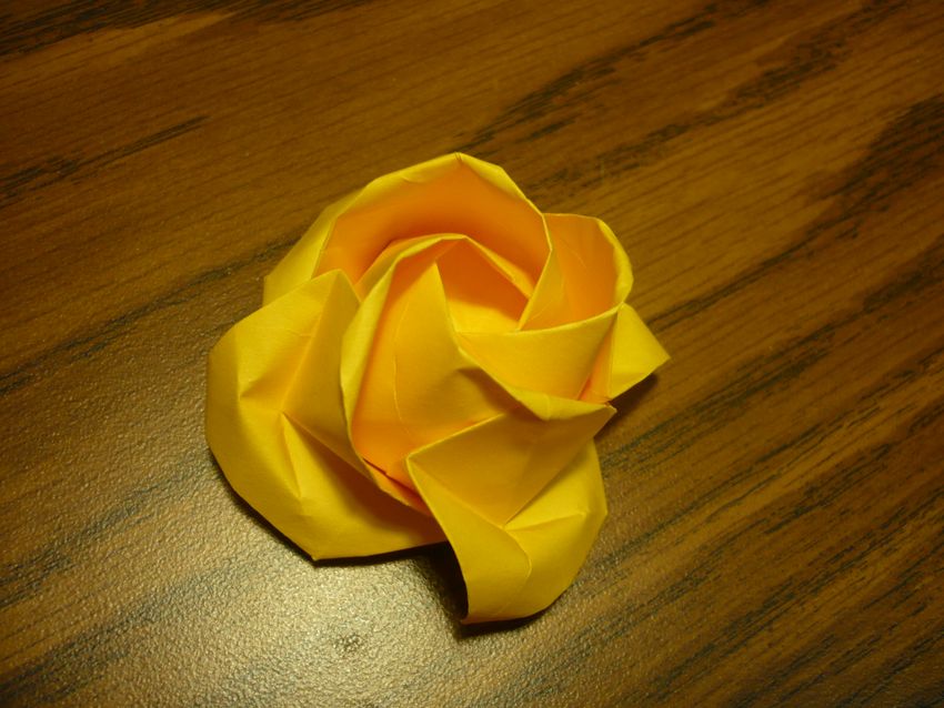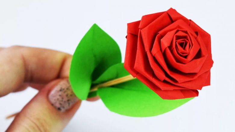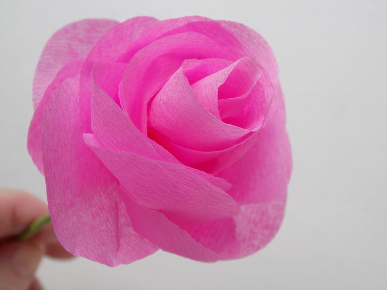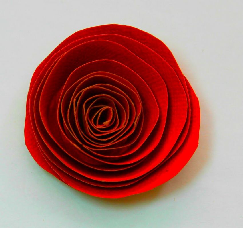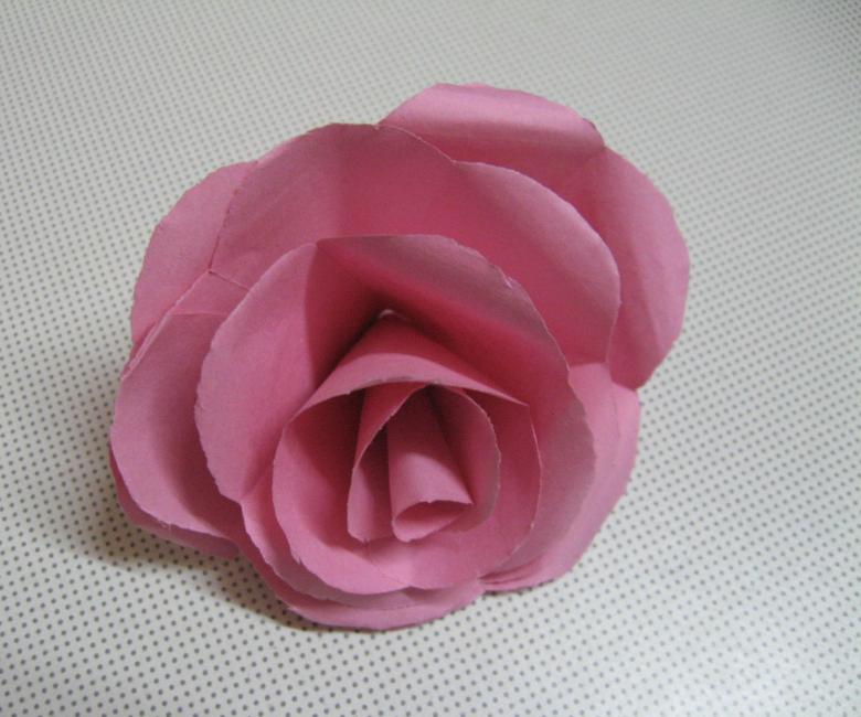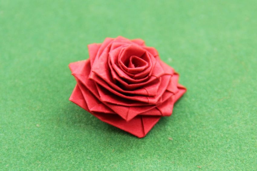 La rose est prête. Si vous réalisez quelques fleurs de tailles différentes de cette manière, vous pouvez faire un magnifique bouquet.